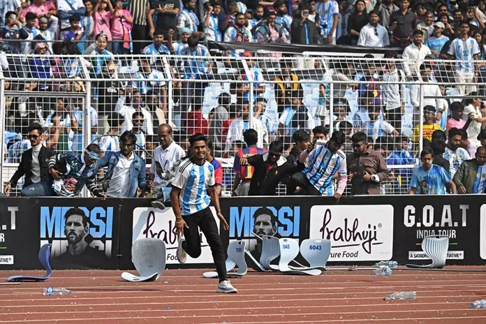 Kolkata: Lionel Messi's brief visit to Kolkata descended into chaos as angry fans broke security protocols after failing to catch even a glimpse of the world's most popular footballer during his blink-and-miss 22-minute appearance at the Salt Lake Stadium on Saturday morning. What was meant to be a red-letter day for football fans in the City of Joy turned into a virtual nightmare, with “less of Messi” and more of what many described as a “royal mess”, as disorder prevailed inside the stadium. Moments after Messi emerged from the tunnel, the situation spiralled out of control. Bollywood superstar Shah Rukh Khan, who had arrived in Kolkata for the special event, along with former India captain Sourav Ganguly and Chief Minister Mamata Banerjee, were unable to be part of the programme as the event was cut short amid the chaos.