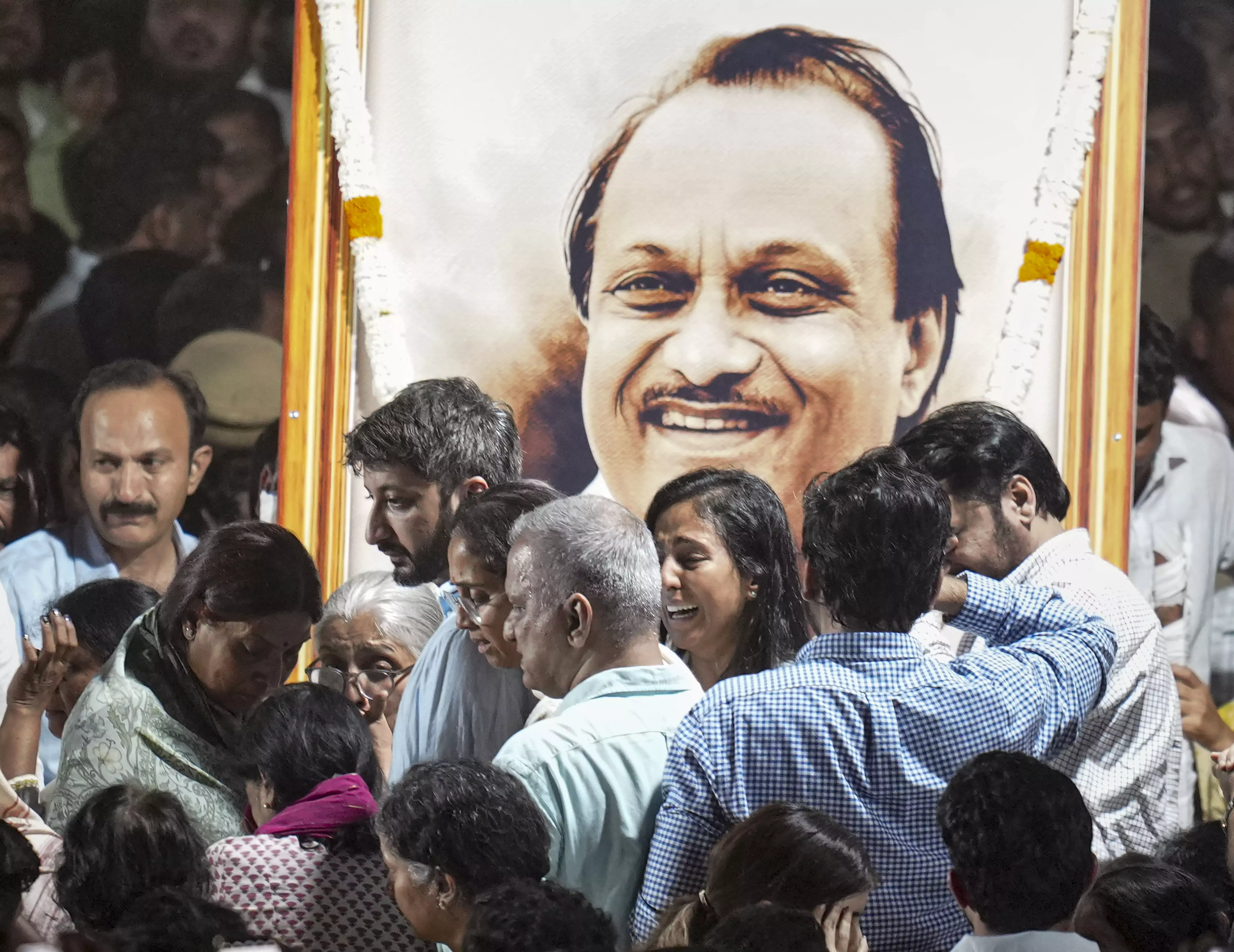 Supporters of NCP chief and Deputy Chief Minister Ajit Pawar gathered outside Ahilyabai Holkar Government Medical College to pay their final respects as his mortal remains were taken out