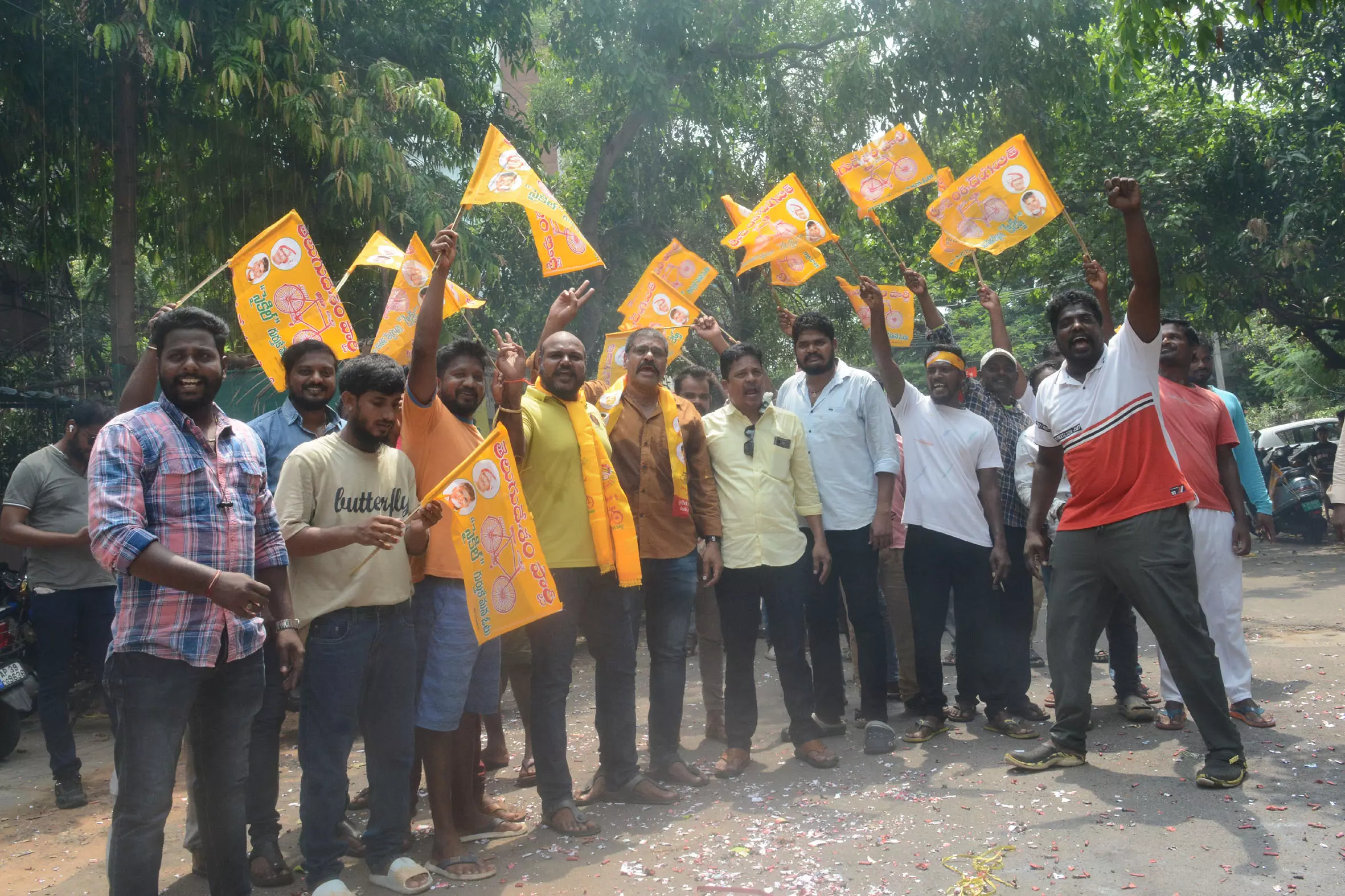 Similarly, the Yellow party cadres celebrated the victory in a big way at the Vijayawada East office, as also at former MLC and TDP leader Buddha Venkanna’s office in the West constituency and TDP MP Kesineni Sivanath (Chinni)’s office.