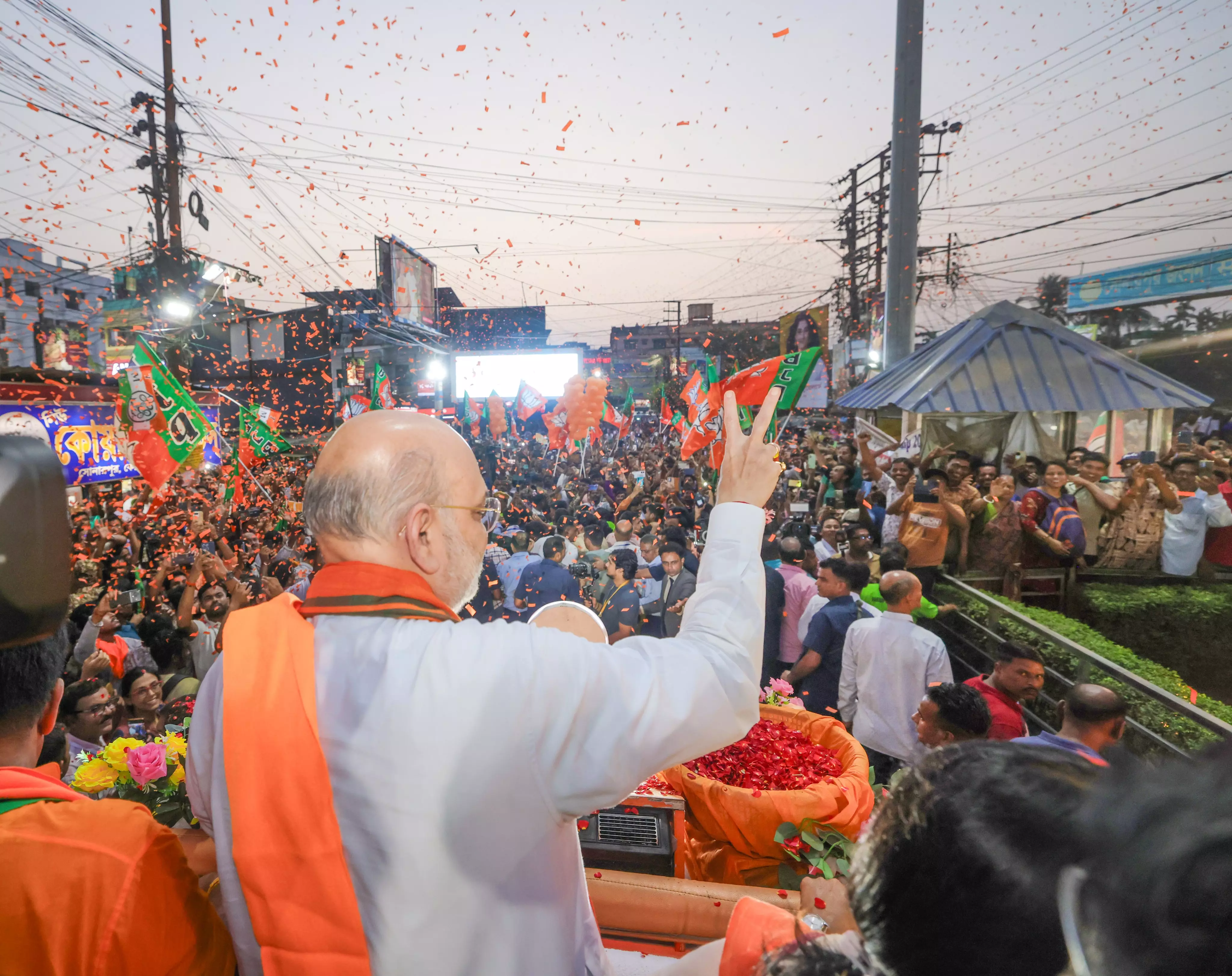 Later in the day, Mr Shah campaigned in three more places, including North 24 Parganas and Hooghly, and led a roadshow in Sonarpur South in the evening.