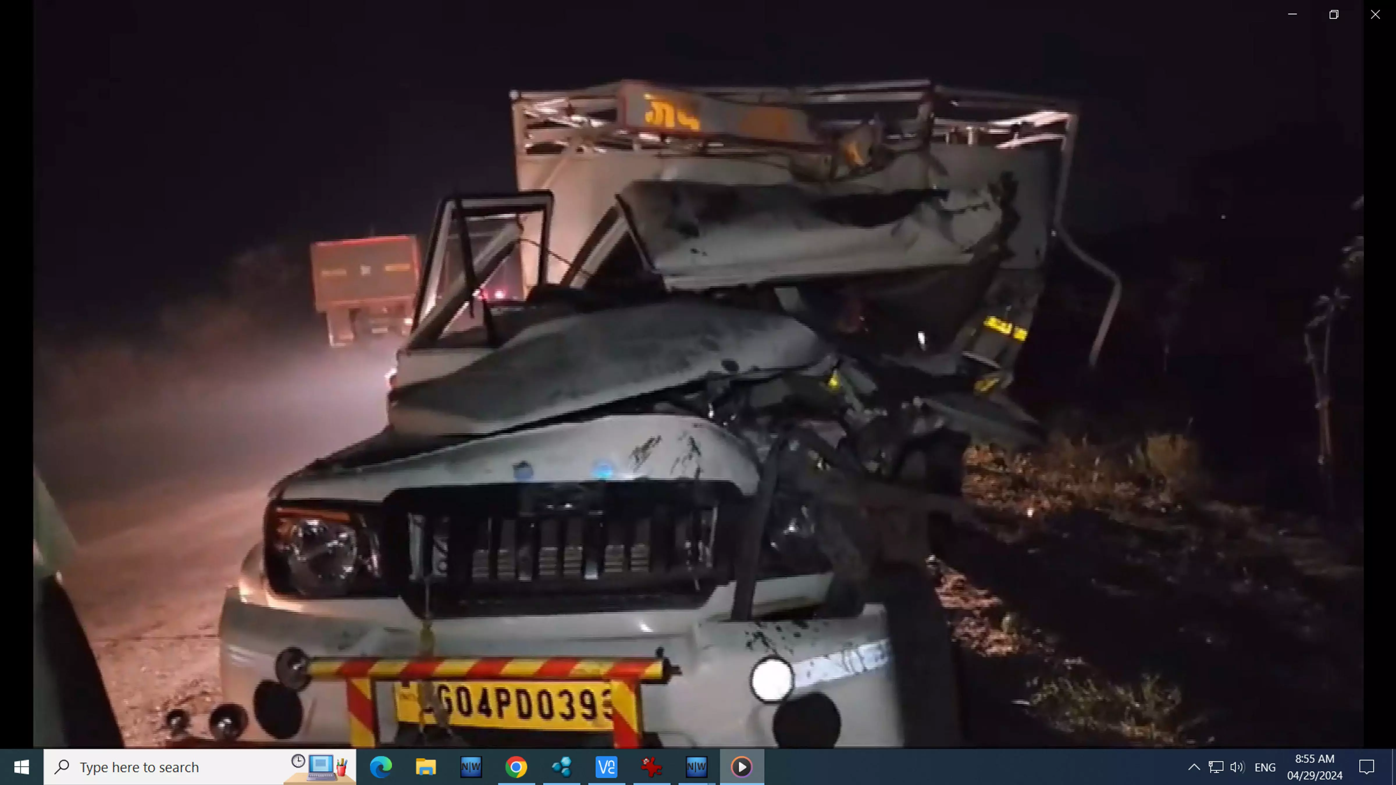 Bemetara: Mangled remains of vehicles after a collision between a goods vehicle and a truck in an accident, in Bemetara district, Chhattisgarh, early Monday, April 29, 2024. Five women and three children were killed and 23 persons injured in the accident. (PTI Photo)