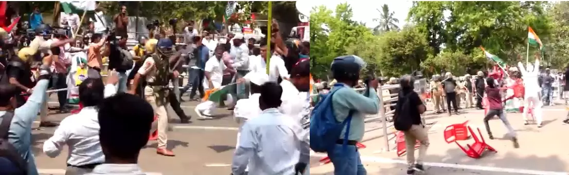 Tensions peaked after speeches by senior Congress leaders, following which a section of the crowd turned unruly. Protesters reportedly threw stones, eggs, and chairs at the security personnel, prompting a strong police response.