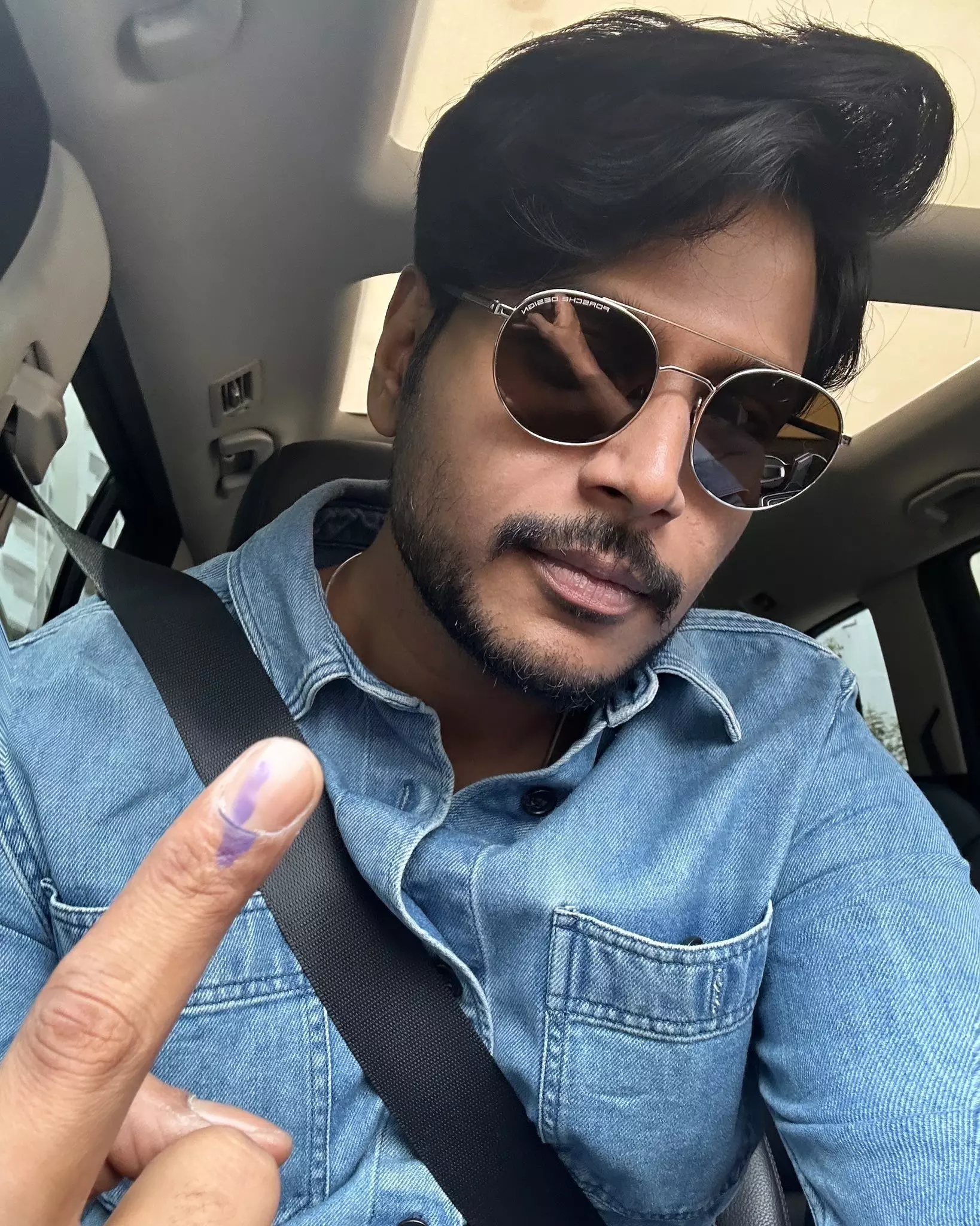 Tollywood actor Sundeep Kishan exercised his right to vote at Venkateshwara College Madhapur.