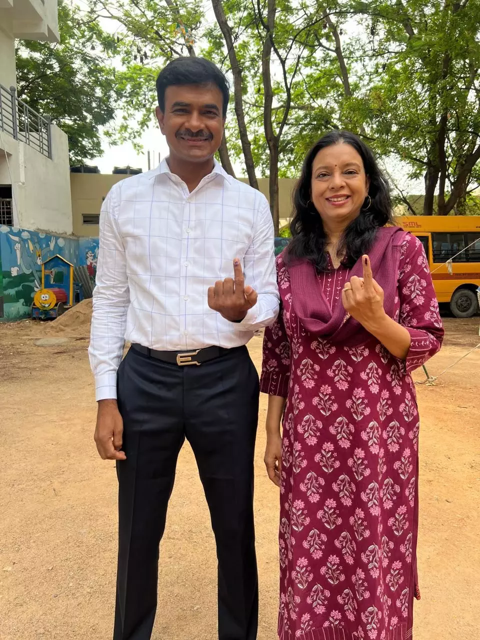 Senior IPS officer C.V. Anand, Director General (DG) of the ACB, along with his wife cast his vote in Hyderabad.
