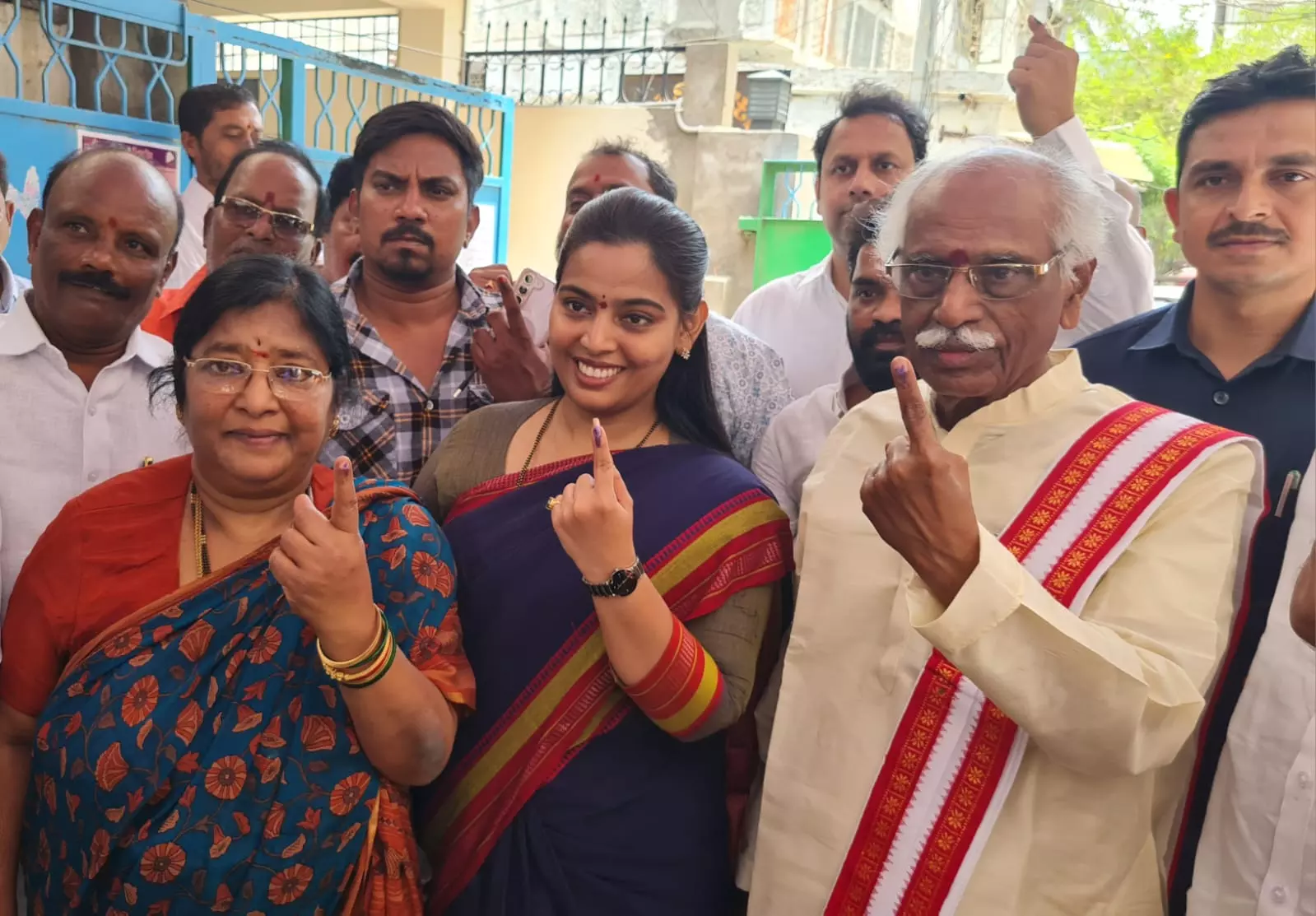 BJP general secretary Bandi Sanjay Kumar and the party candidate from Hyderabad Lok Sabha seat K Madhavi Latha also exercised their franchi