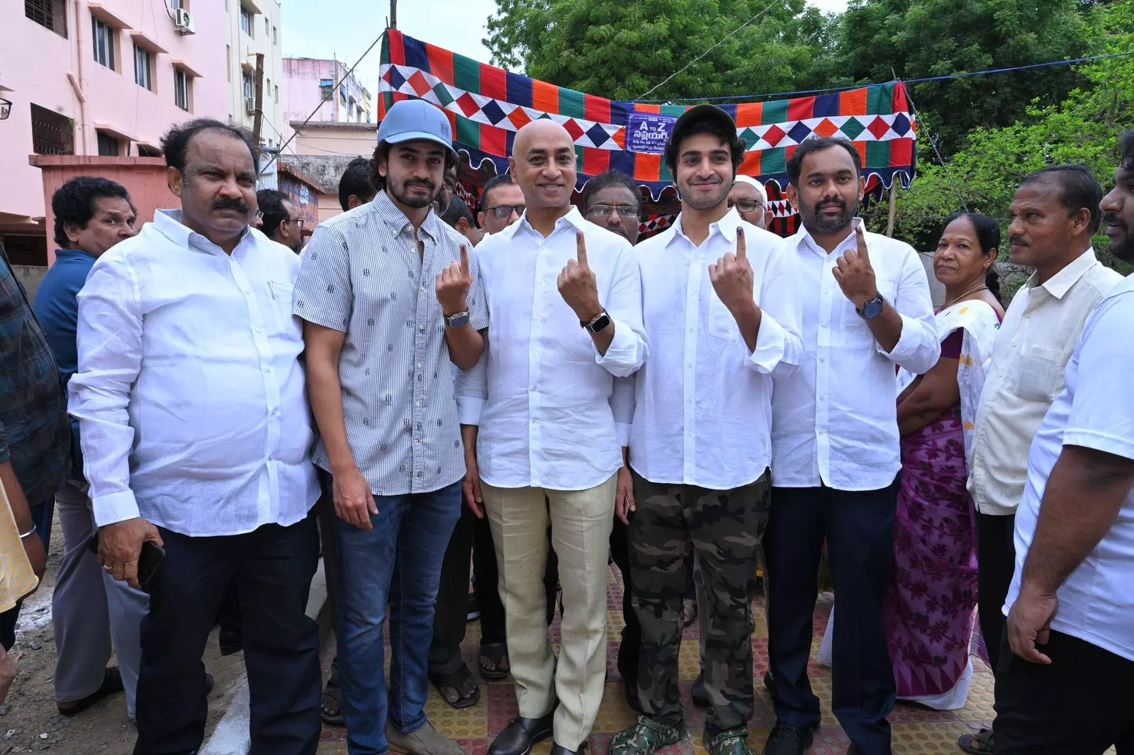Telugu actor Anand Deverakonda, along with his mother, cast his vote at Jubilee Hills Public School in Hyderabad.