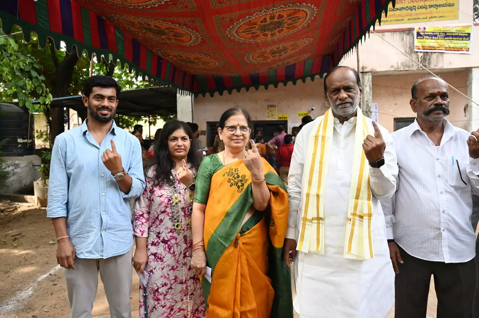 BJP Parliamentary Board member Dr K Laxman casts his vote along with his family members.