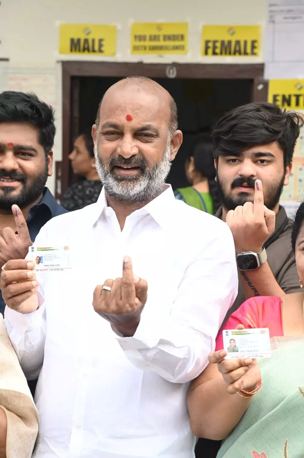 BJP general secretary Bandi Sanjay Kumar and the party candidate from Hyderabad Lok Sabha seat K Madhavi Latha also exercised their franchi