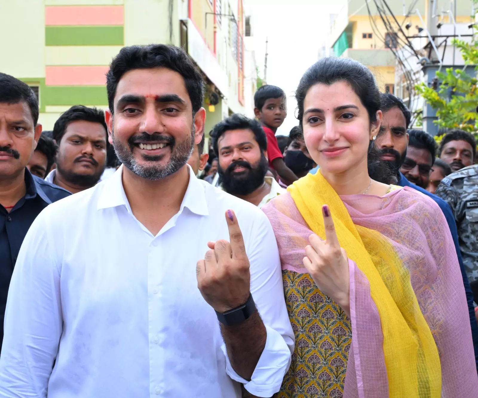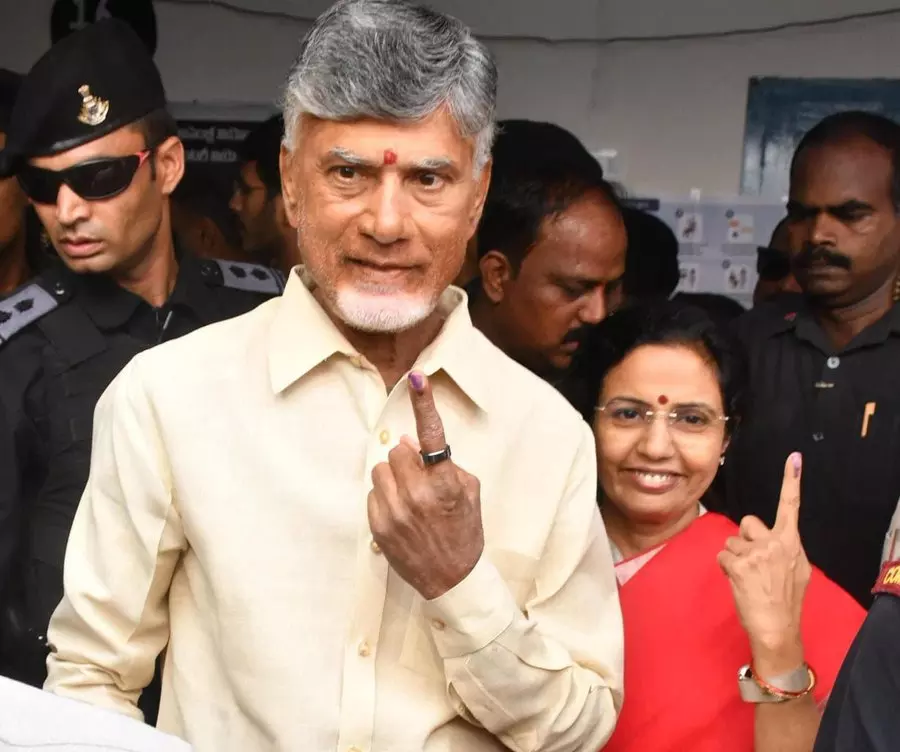 TDP Chief Nara Chandrababu Naidu and his wife Nara Bhuvaneswari cast vote in Undavalli.