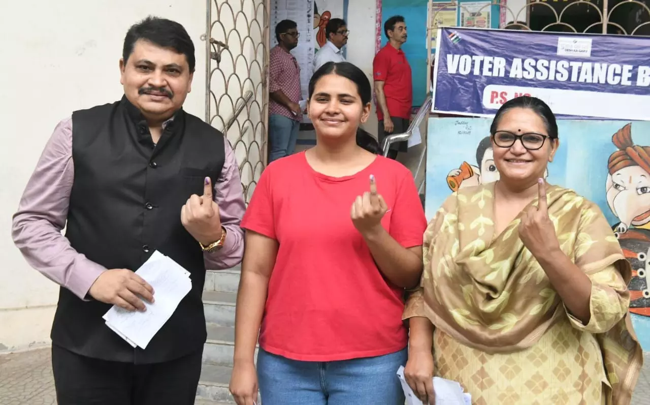 Additional DGP Railways & Road safety, Mahesh M Bhagwat along with family members cast his vote at Chinmaya school, Kundanbagh In Hyderbad