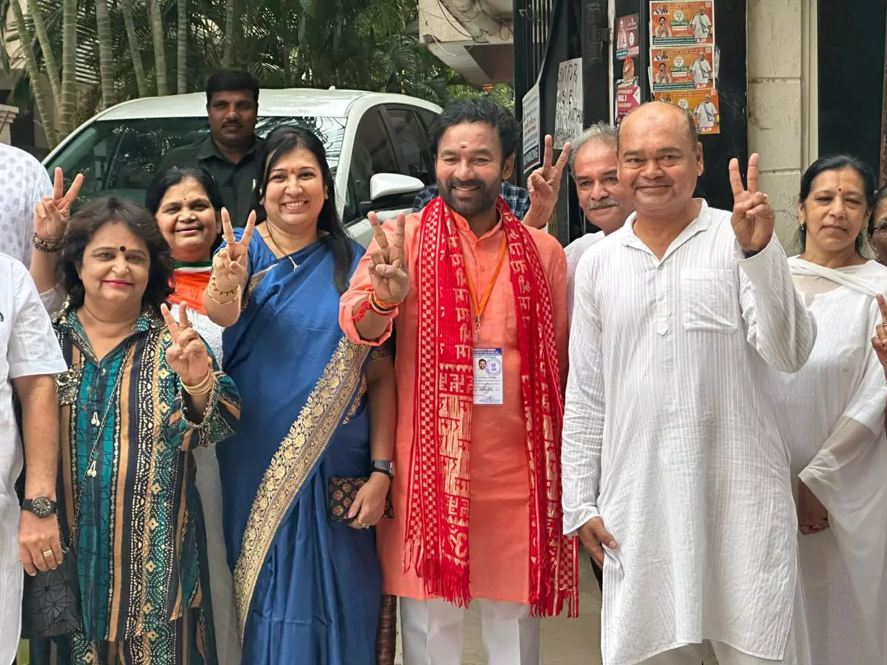 BJP general secretary Bandi Sanjay Kumar and the party candidate from Hyderabad Lok Sabha seat K Madhavi Latha also exercised their franchi