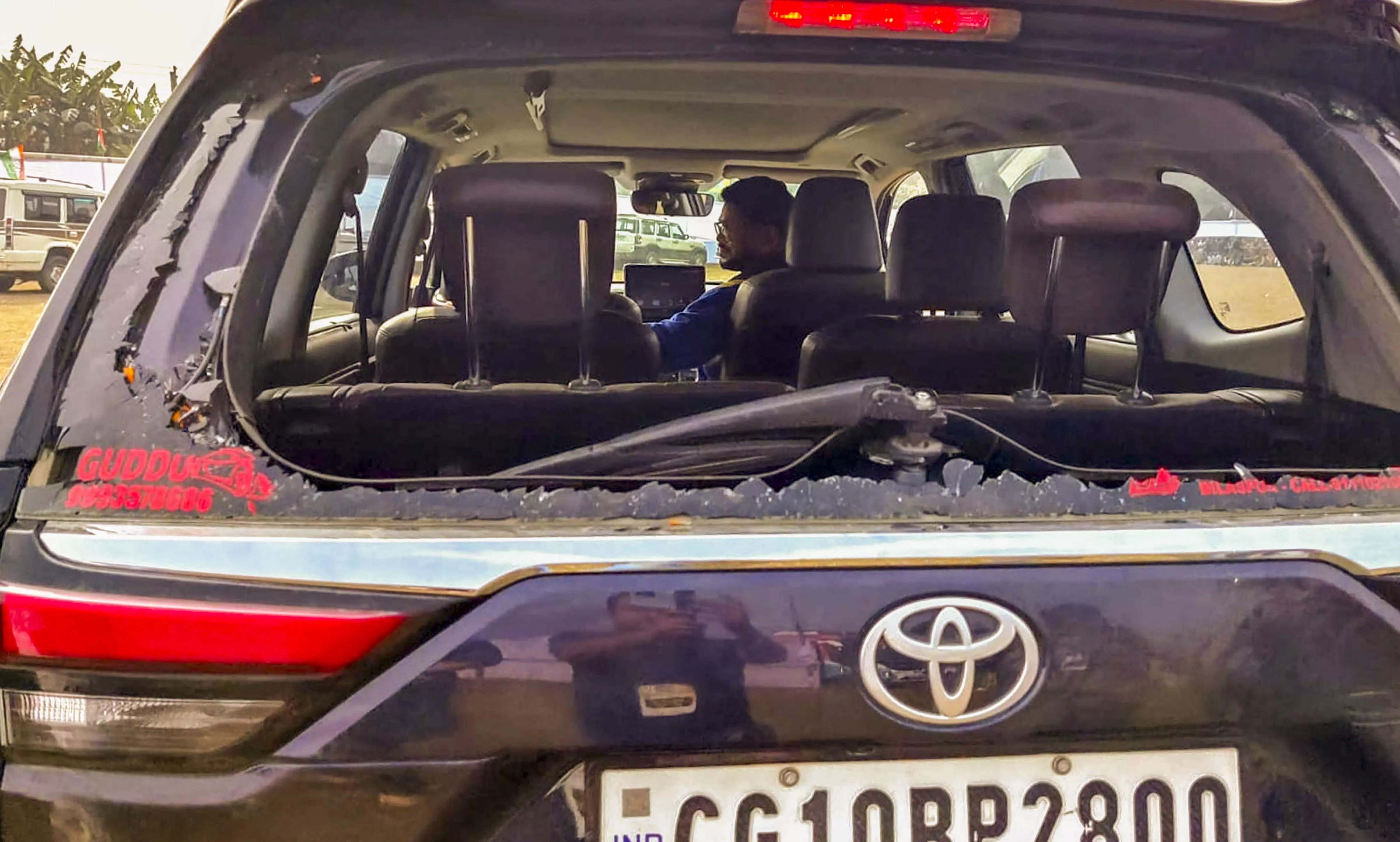 Mr Choudhury, who was present in the car with Mr Gandhi, said, “Some unknown armed miscreants pelted stones which broke the rear windshield of our car at Diwangunge.”