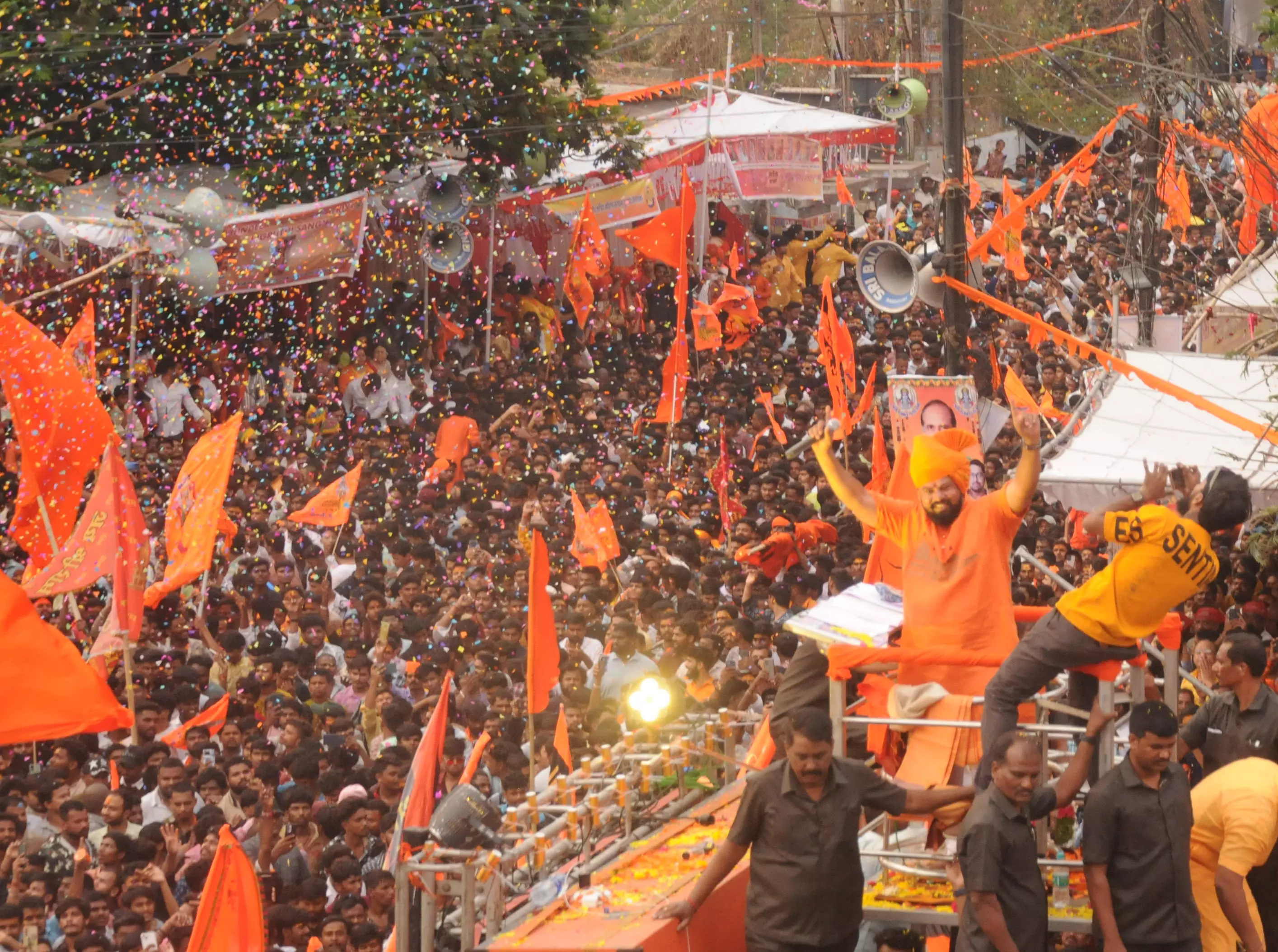 BJP MLA Raja Singh initiated the procession from the temple with loud music and singing, along with heated comments, sparking debates. Beginning at 3 pm, the procession went on until 11.30 pm.