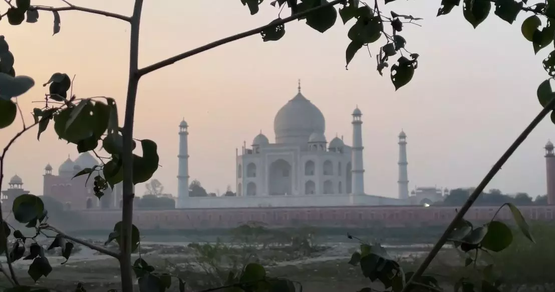 As the fog clears, the Taj Mahal in Agra continues to offer an iconic view.