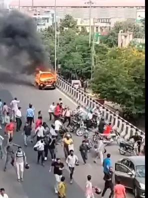 Jaipur: Moving Car engulfed in Flames Triggers Panic on Road