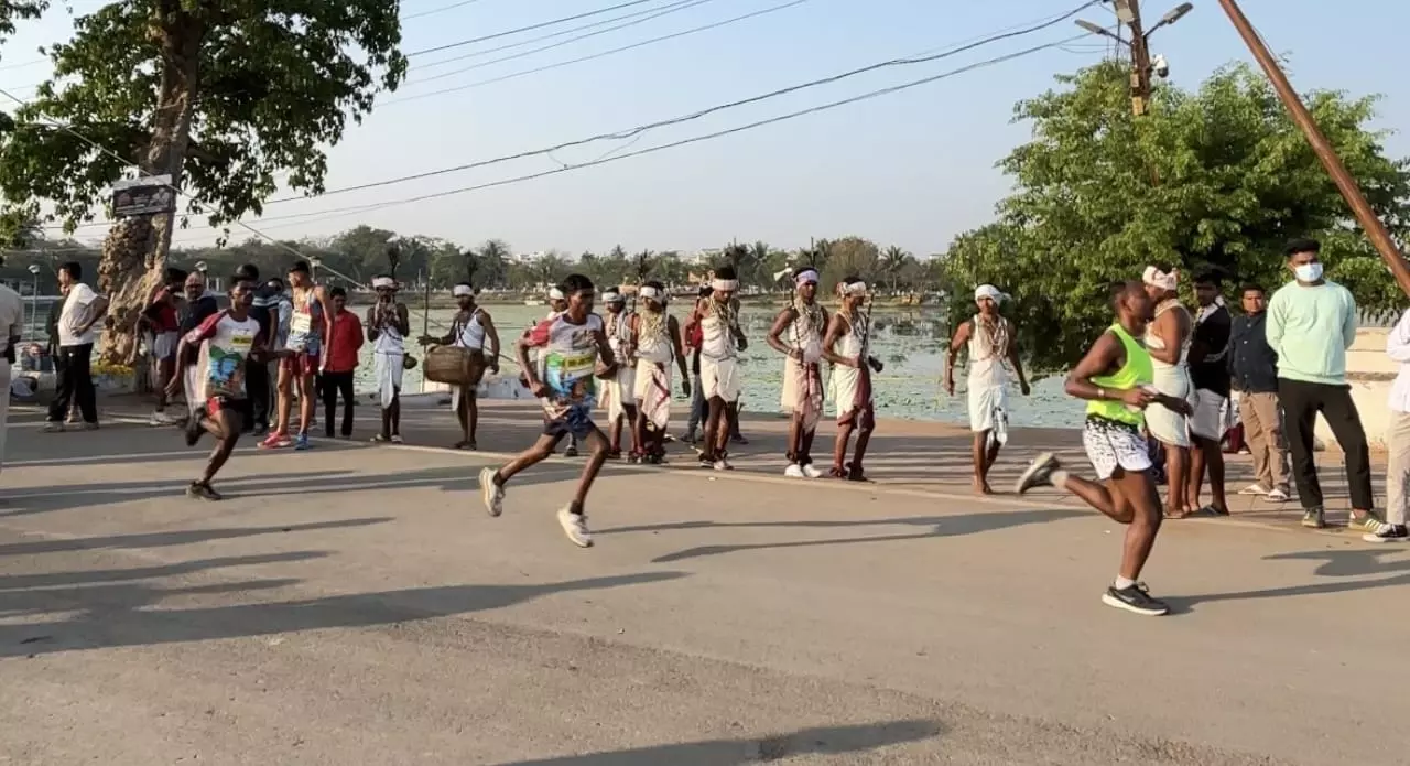 The tribal cultural and dance troupes were seen giving colourful performances at different points in the route of the marathon to greet the participants, highlighting the rich cultural heritage of the region.
