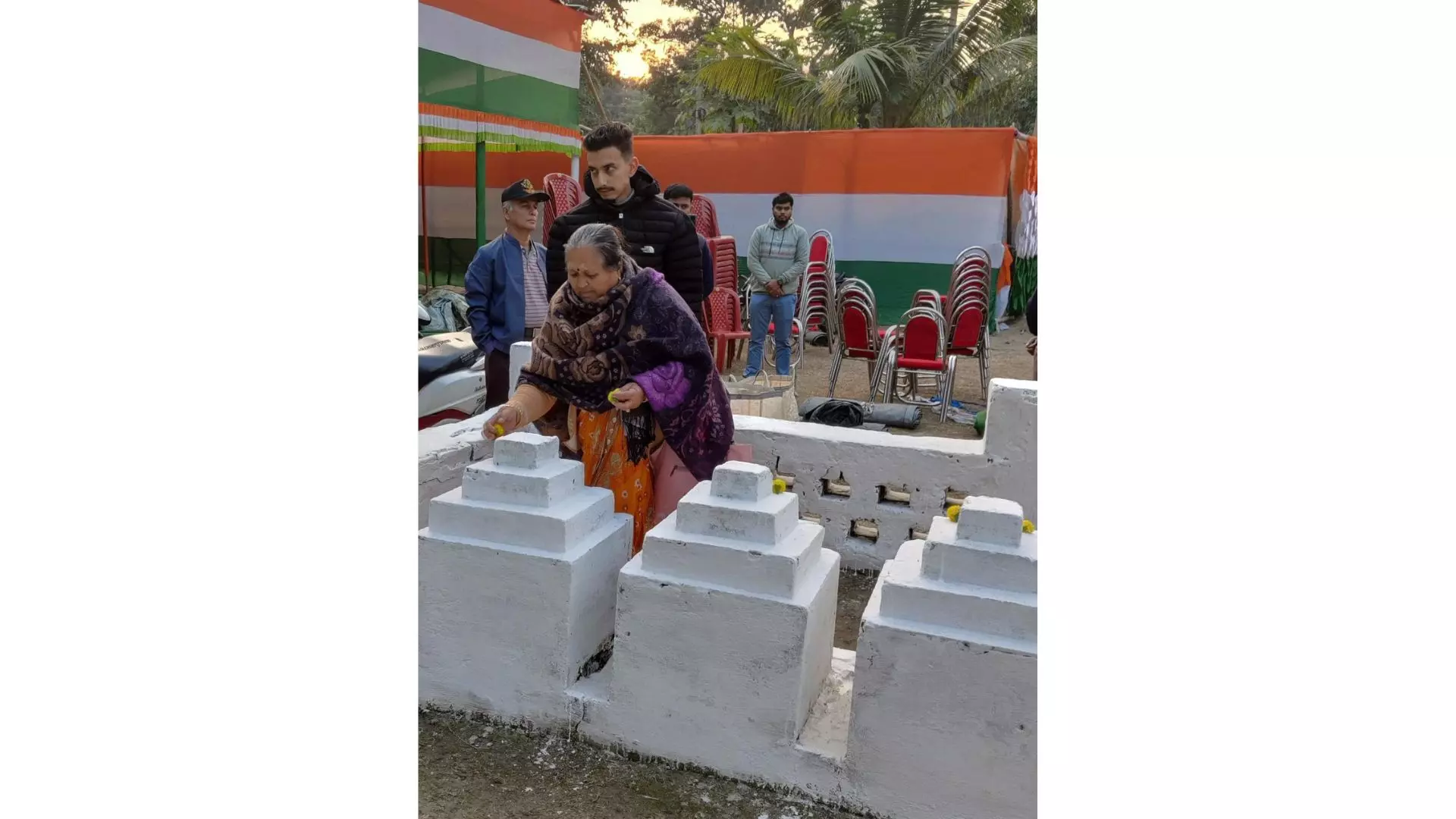 On Sunday, Maili Chhetri (74) from Dalmore Tea Estate in Alipurduar laid a wreath at the memorial of her husband, Tek Bahadur Chhetri, who had served as a jawan in the Indian Army, at Krishnaganj in Nadia a day before Vijay Diwas celebration that marks the war victory.