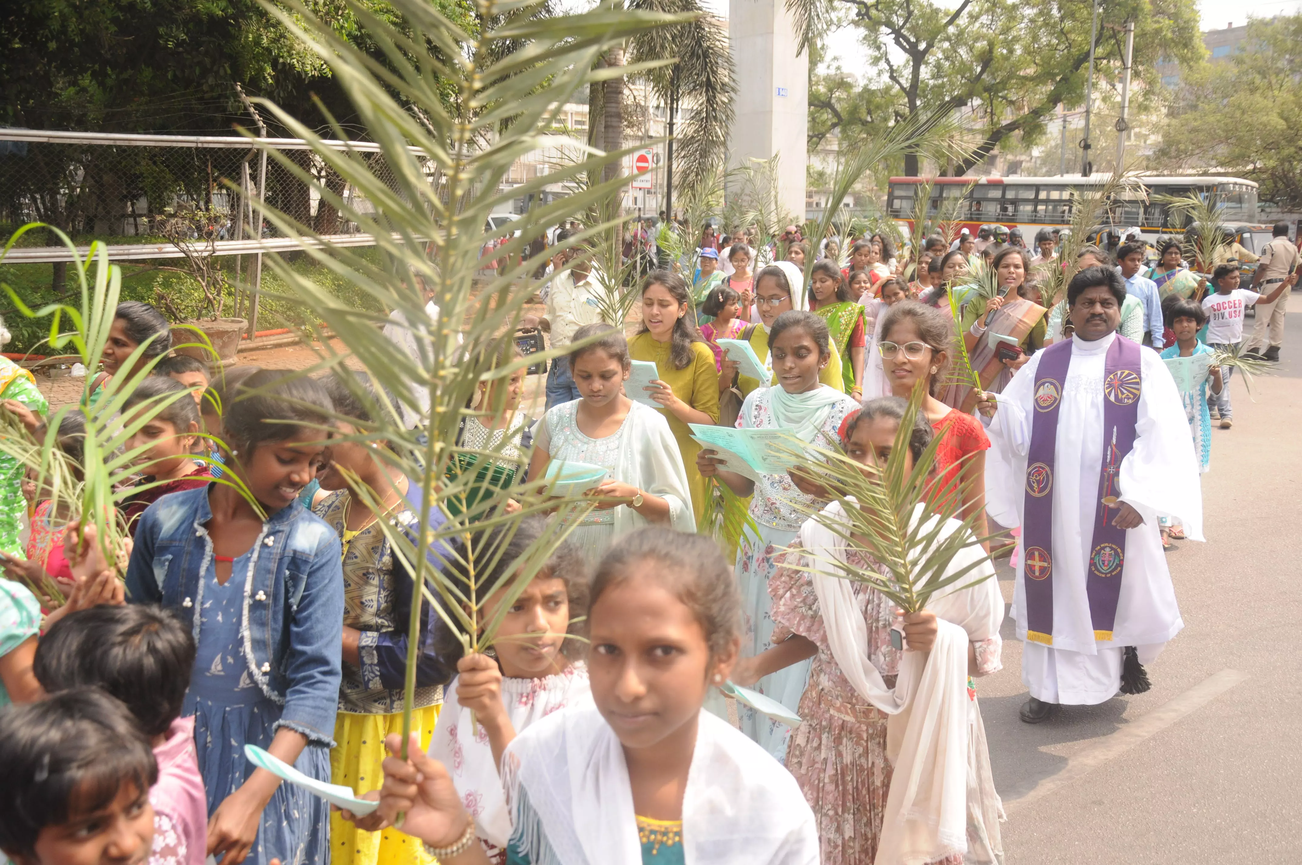 Rev. C.G. Dayanand, executive secretary of the Hyderabad Regional Conference, explained the significance of Palm Sunday, stating, “This is the day when Jesus Christ was acclaimed as the king of Jews by the people. As he entered the city of Jerusalem, people laid palms and spread clothes on the streets, fulfilling the prophecy.”