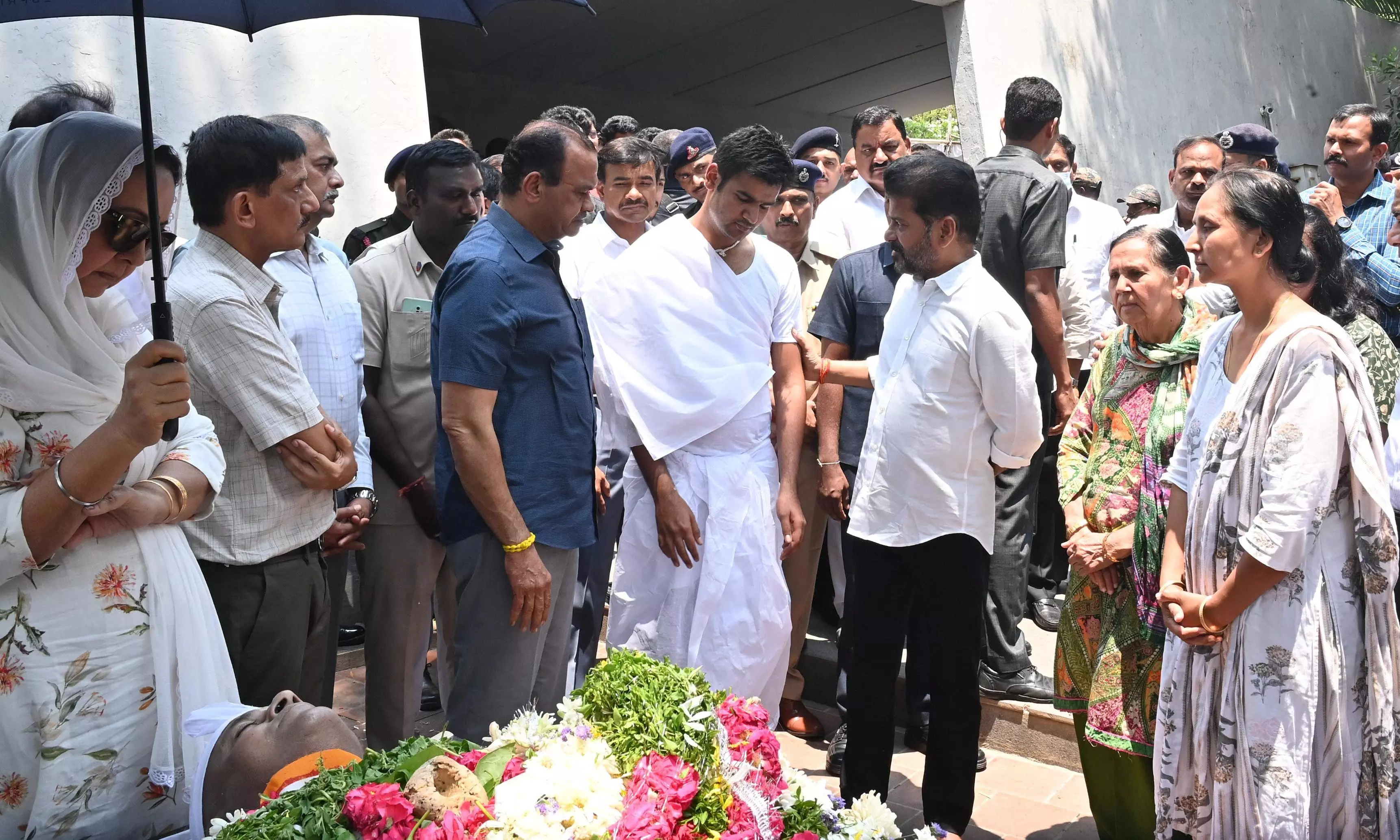 Chief Minister A. Revanth Reddy and Minister Komatireddy Venkat Reddy visited Maha Prashtanam and paid tributes. The Chief Minister offered condolences to the bereaved family members.