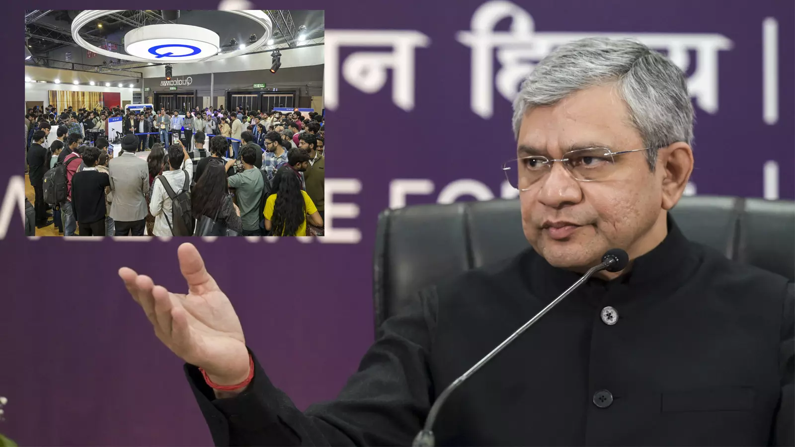 Union Minister Ashwini Vaishnaw, Inset: AI Summit Pic | Images Source: PTI