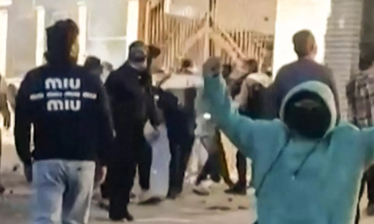 This grab from UGC images posted on social media shows protestors attacking a government building in Fasa, in southern Iran (AFP)