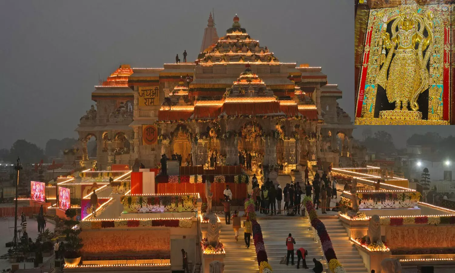 Ayodhya Ram Temple | Inset: Idol Of Ram (Image Source: DD News)