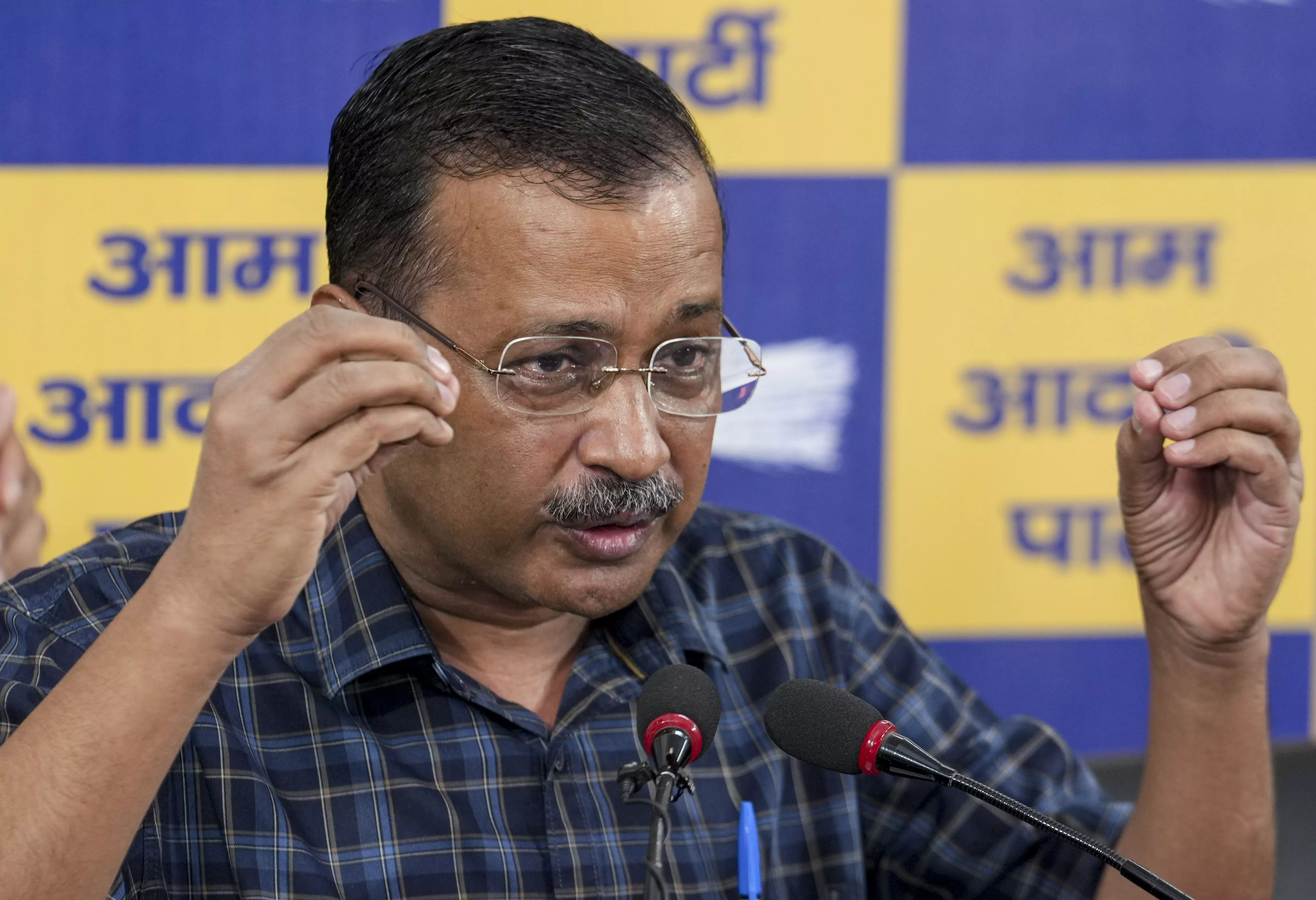 Aam Aadmi Party (AAP) chief Arvind Kejriwal addresses a press conference, in New Delhi, Thursday, Aug. 28, 2025. (PTI Photo/Kamal Kishore)