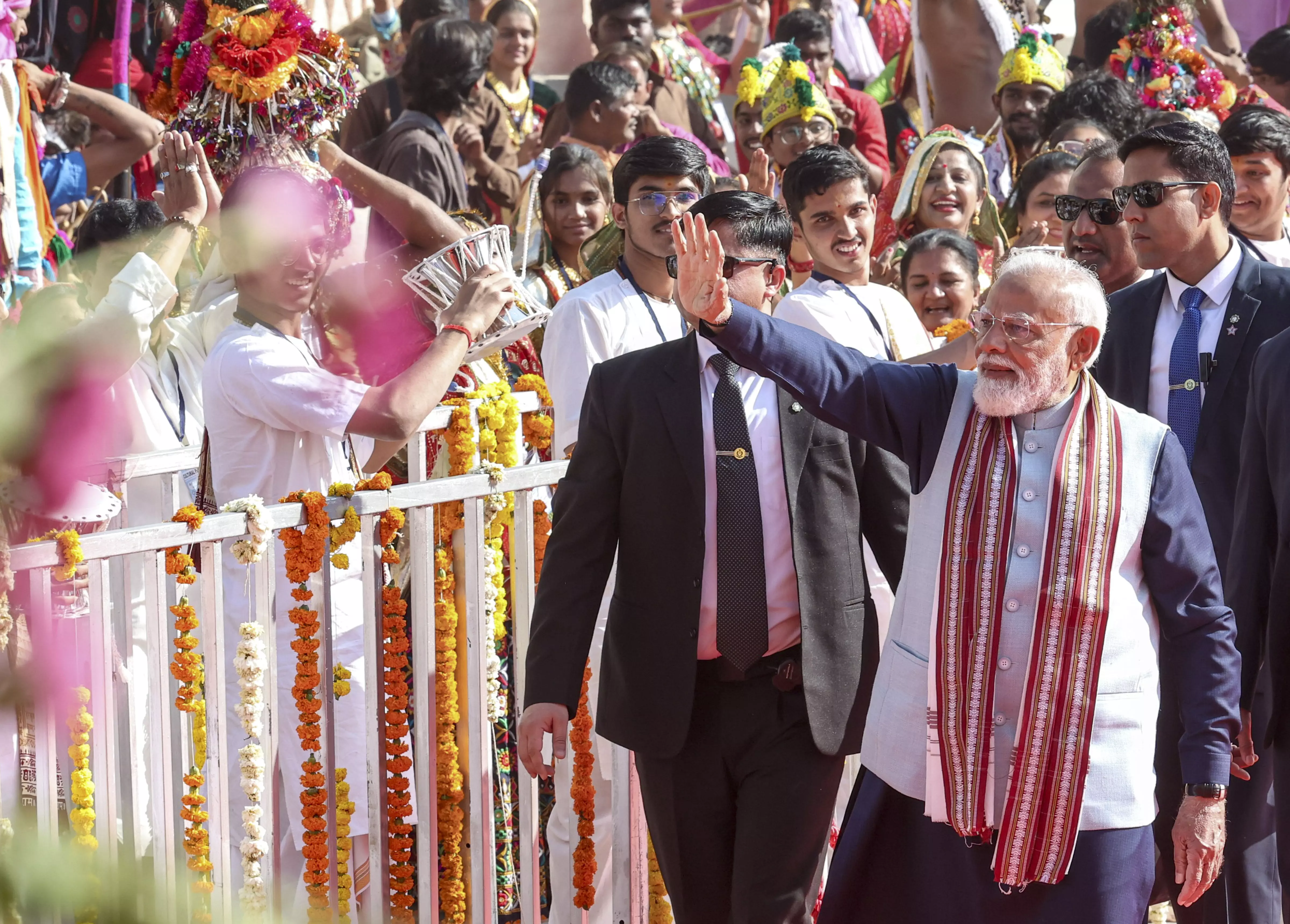 Prime Minister Narendra Modi during the Shaurya Yatra procession as part of Somnath Swabhiman Parv, in Somnath, Gujarat. (PMO via PTI Photo)