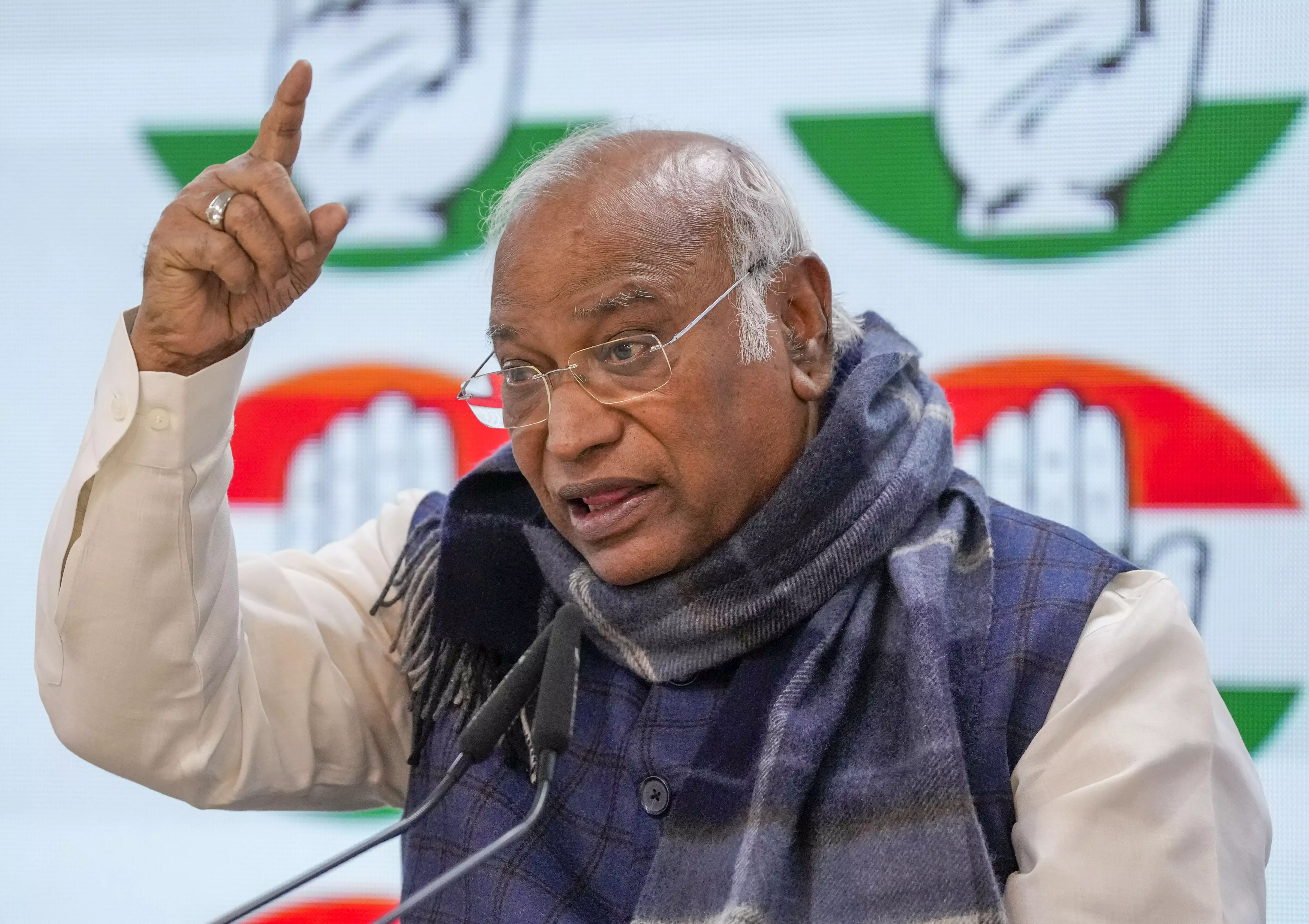Congress President Mallikarjun Kharge addresses a press conference, at AICC Headquarters in New Delhi, Thursday, Dec. 19, 2024.