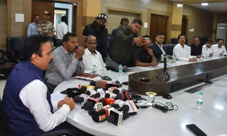 PPA chairman P.L. Haranadh (left) shares with local media persons in Paradip about the port scripted history by clocking the fastest-ever 100 million metric tonnes (MMT) cargo throughput in a fiscal year since its inception.