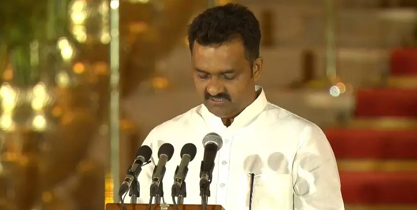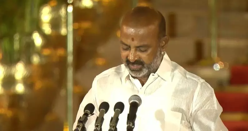 Bandi Sanjay Kumar, the former state president of the Bharatiya Janata Party in Telangana takes oath