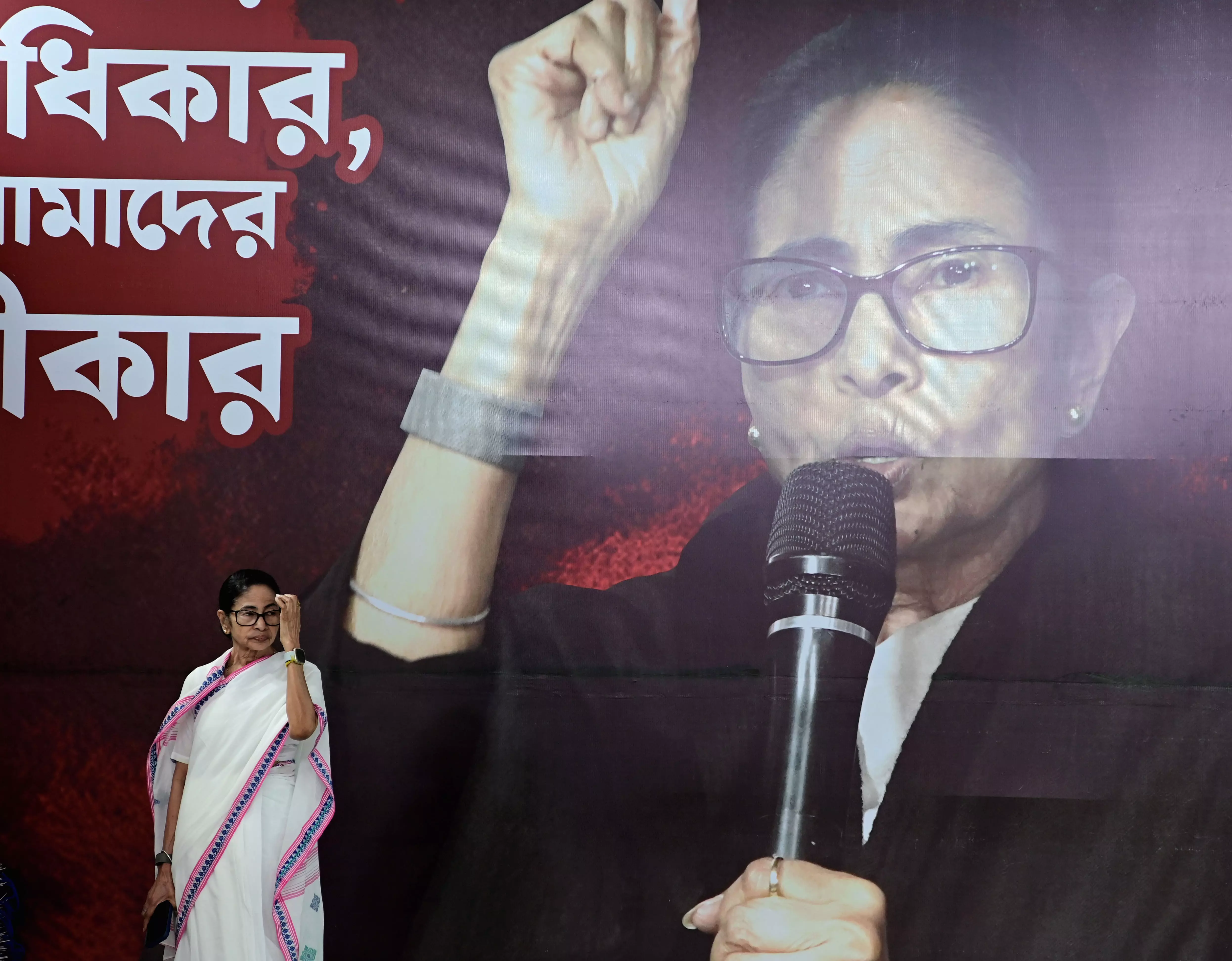 Kolkata: West Bengal Chief Minister Mamata Banerjee on Sunday asserted there was no breach of protocol at President Droupadi Murmu's programme in Siliguri and said that the responsibility of mismanagement at the function, if any, lay with its private organisers and the Airports Authority of India who provided the venue of the event. While speaking from the central Kolkata sit-in platform on a day Prime Minister Narendra Modi lashed out at the TMC government "insulting" a woman tribal leader and the President of the country, Banerjee held up an enlarged photograph of the PM remaining seated at an event with veteran BJP leader LK Advani with the President standing next to them.