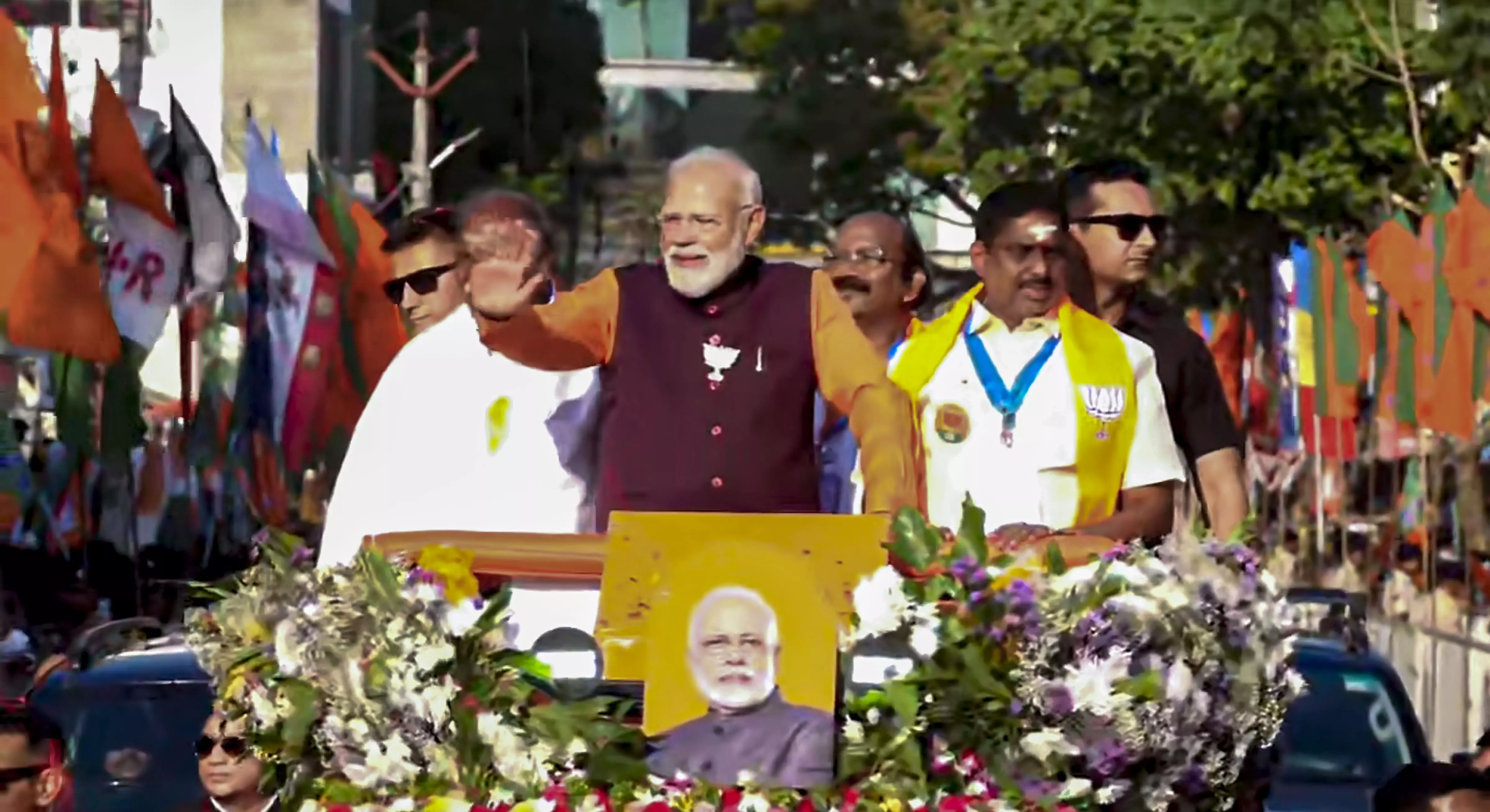 Modi commenced his roadshow in the city ahead of April 9 elections to the territorial Assembly.