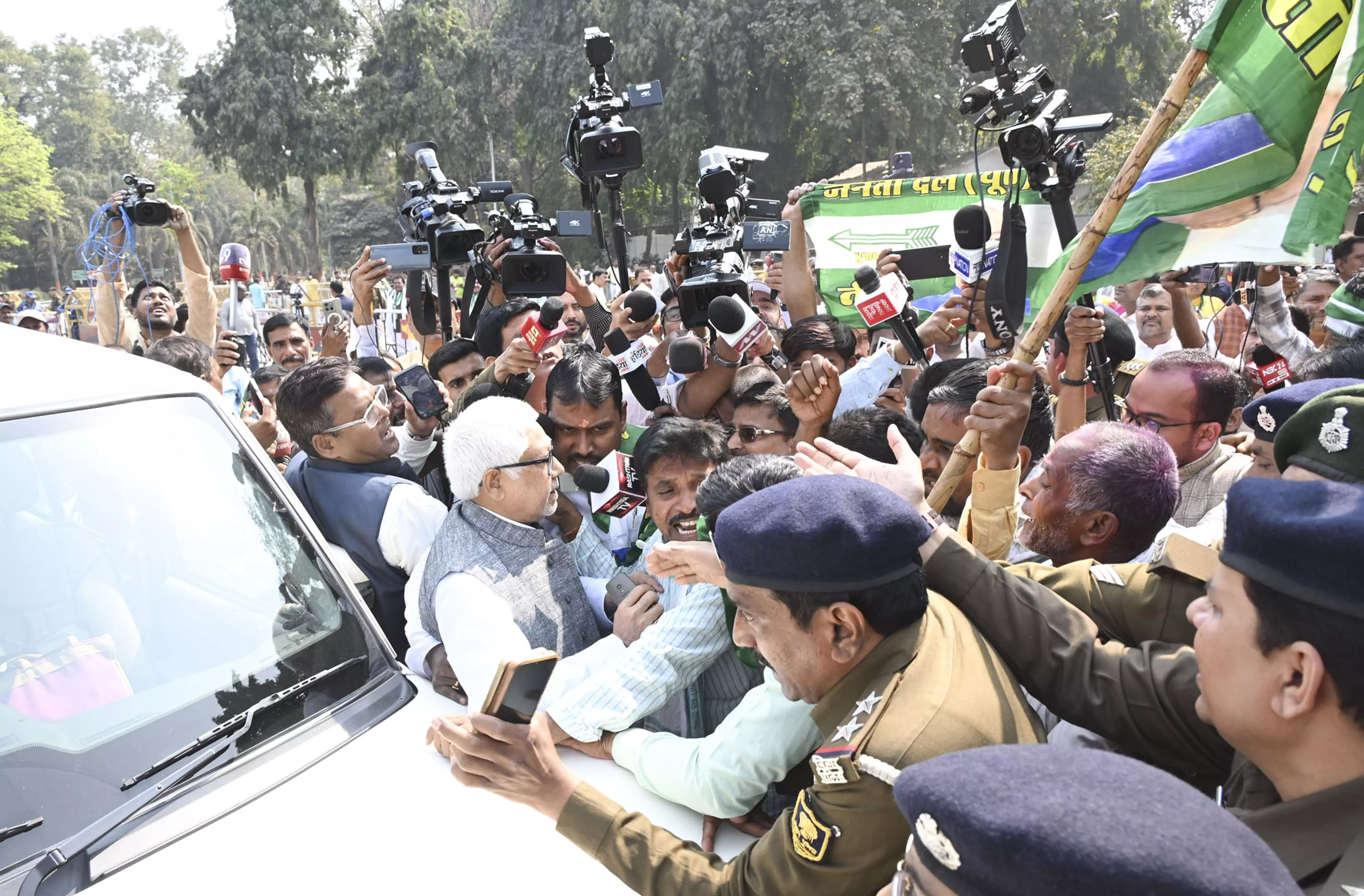 The JD (U) workers and supporters, protesting outside the Chief Minister's residence in Patna, refused to believe that Nitish Kumar has decided to give up the Chief Minister post.