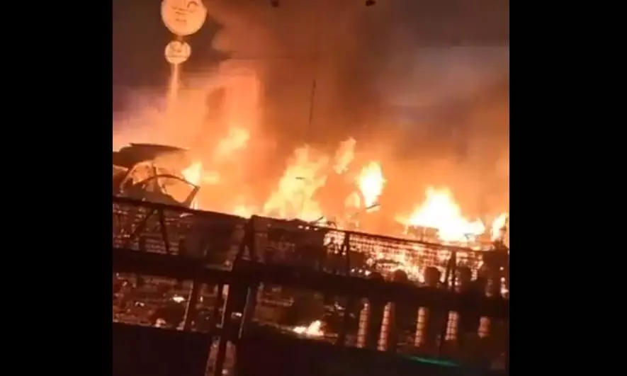 Panic gripped the blast site as fire billowed from burning cars following the explosion.