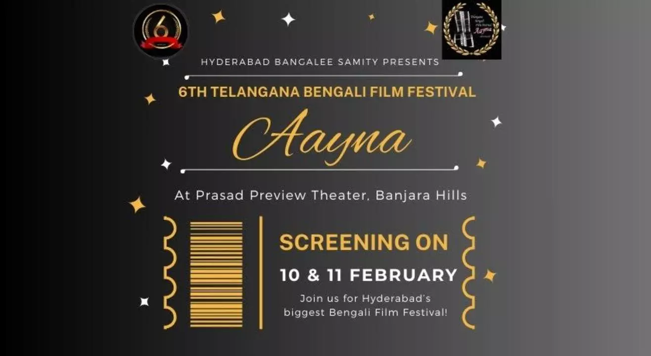 The 6th edition of AAYNA – the Telangana Bengali Film Festival (TBFF) — will be held on February 10 and 11 at Prasads Preview Theatre, Banjara Hills. (Image:X.Com)