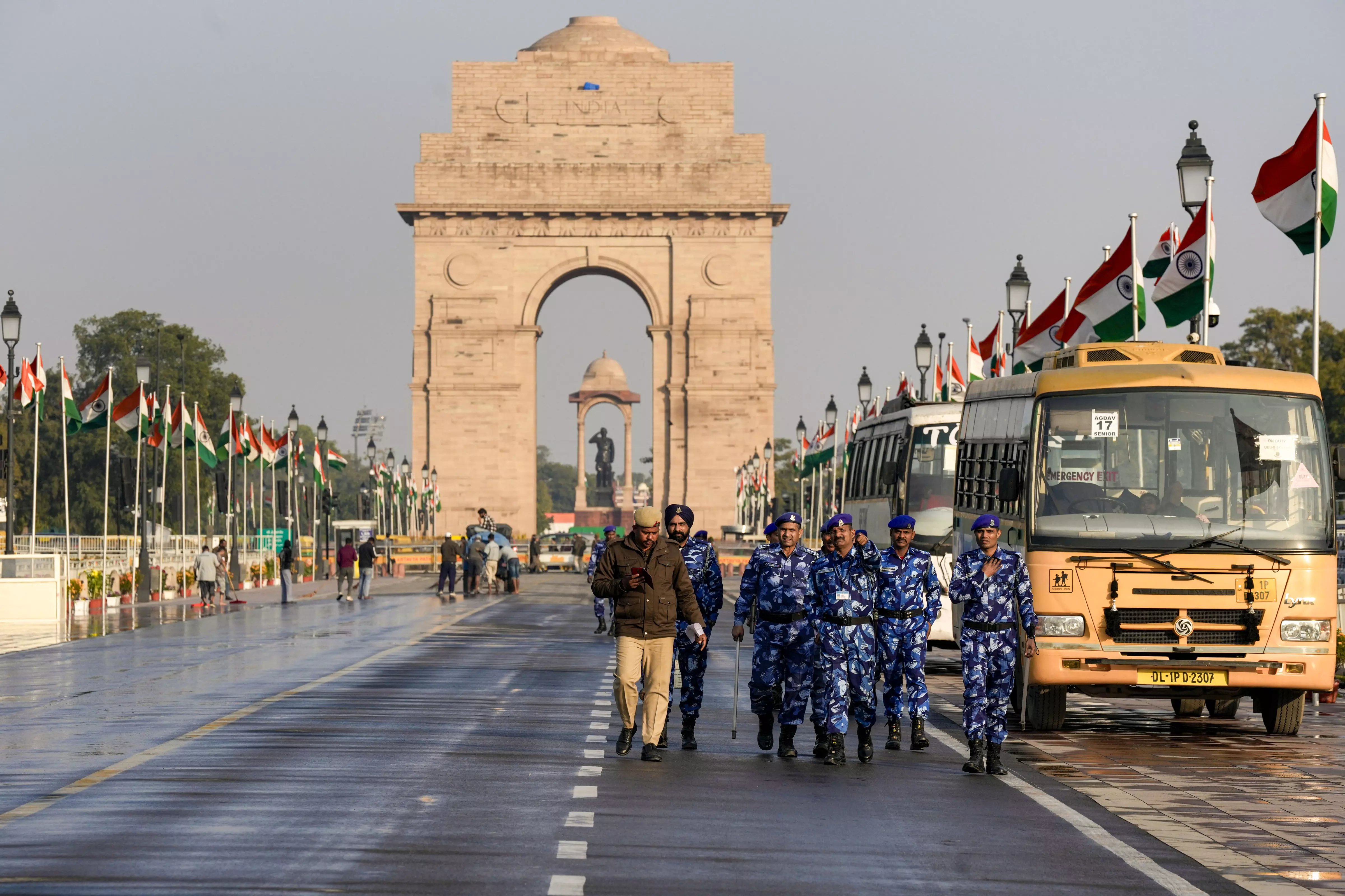 New Delhi: Security personnel are deployed along Kartavya Path near India Gate ahead of the Republic Day celebrations in New Delhi, Sunday, Jan. 25, 2026. - PTI