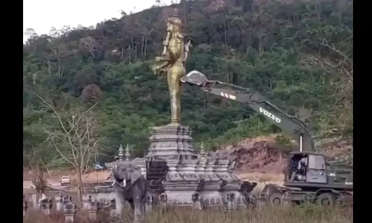 Videos showing the demolition of the Vishnu statue using a backhoe circulated widely on Thai social media pages this week.