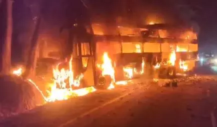 10 Passengers Escape with Injuries as Bus Catches Fire near Bengaluru