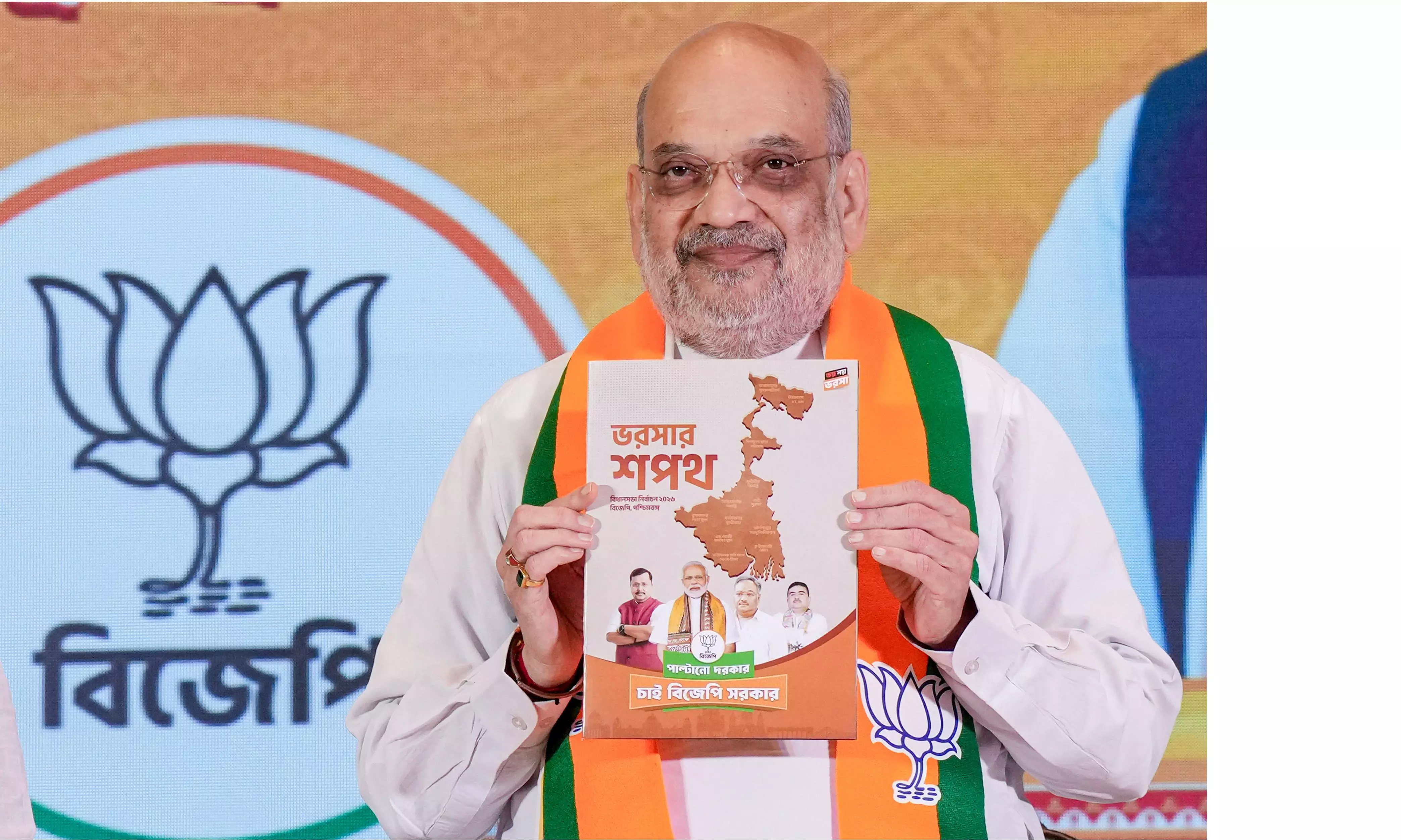The list of 15 Bhorosar Shopoth (pledges of support) includes Uniform Civil Code (UCC) implementation, modernisation of fisheries to connect with Bengalis' fascination for Machh-Bhat (fish and rice), a ₹3,000 monthly allowance each for the women and unemployed which are double of what TMC has started providing, and eviction of infiltrators, a key agenda of the BJP.