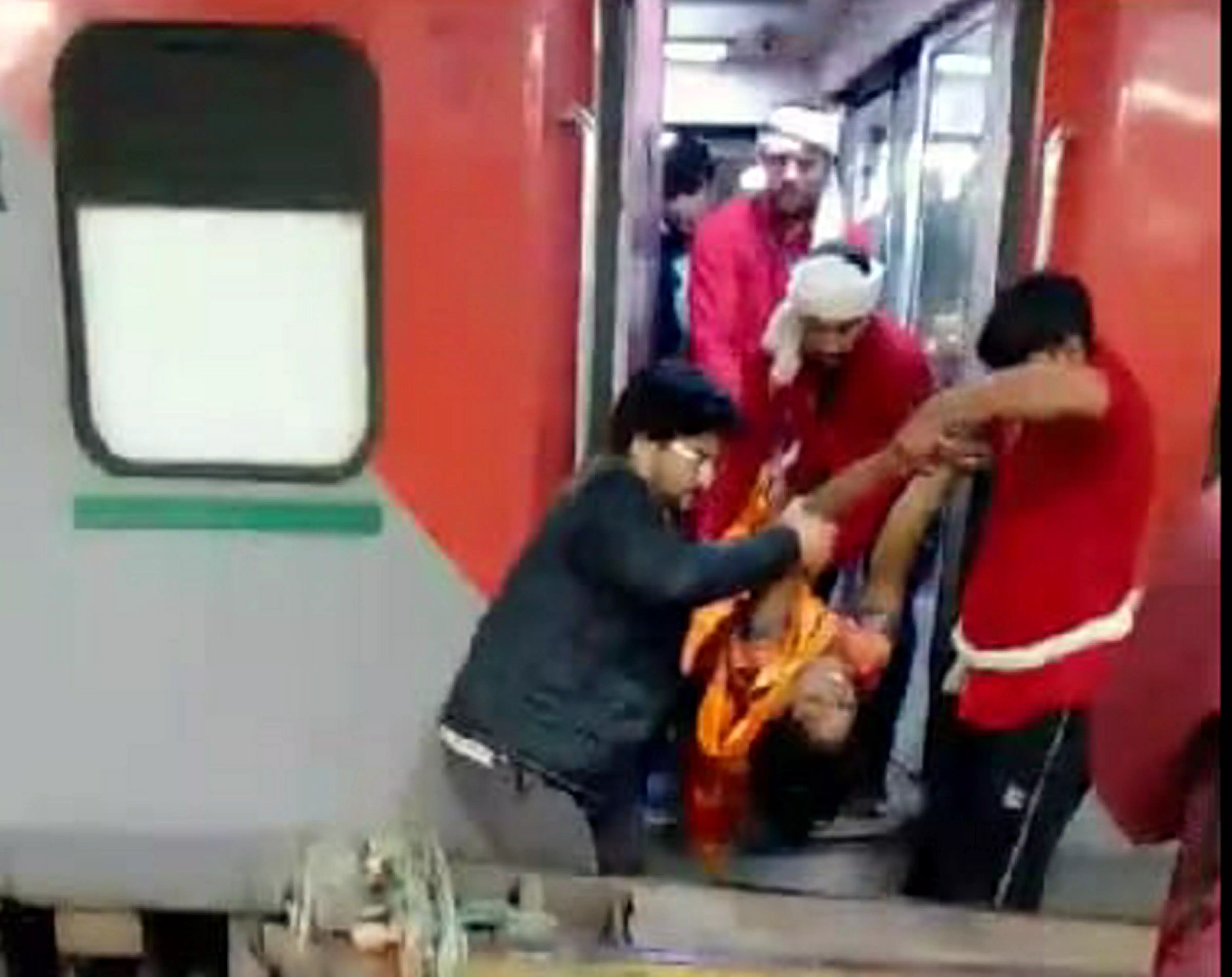 A woman, who fell unconscious, being taken on a trolly from a train, at the New Delhi railway station (PTI)