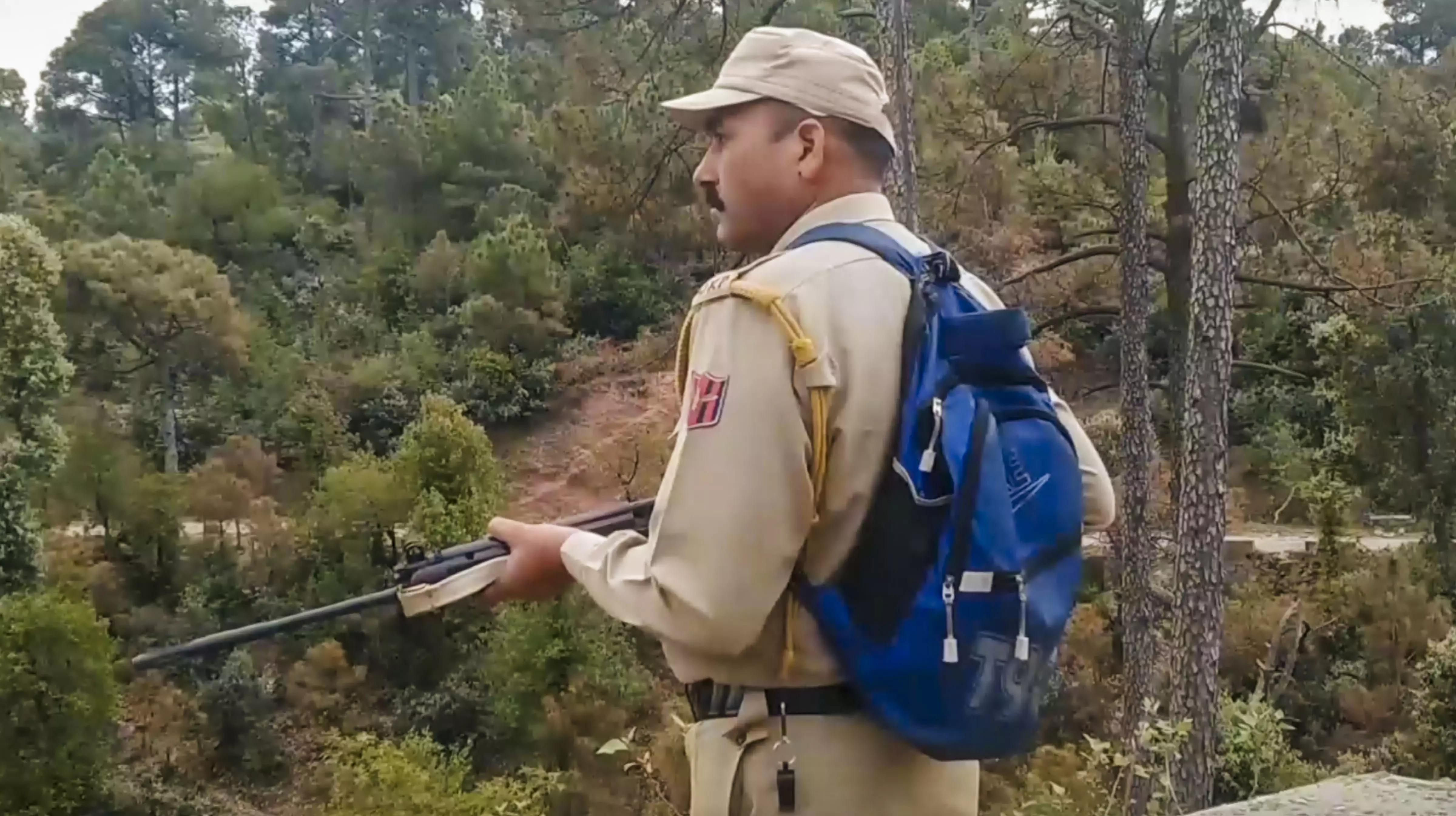 A security personnel keeps vigil during a search operation after night-long cordons in Jammu and Kashmir's Udhampur (PTI)