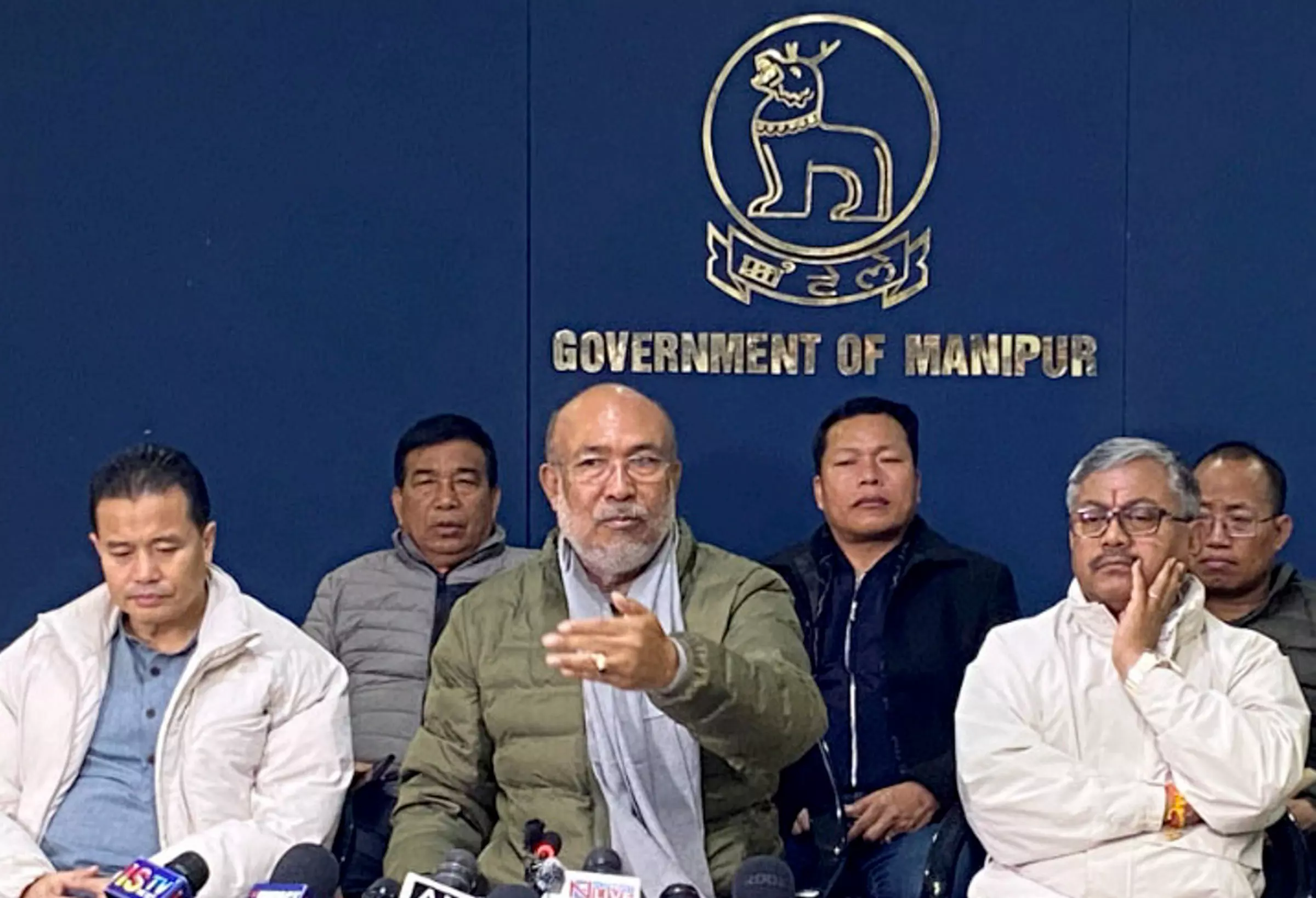 Manipur Chief Minister N. Biren Singh addresses a press conference in Imphal, (PTI)