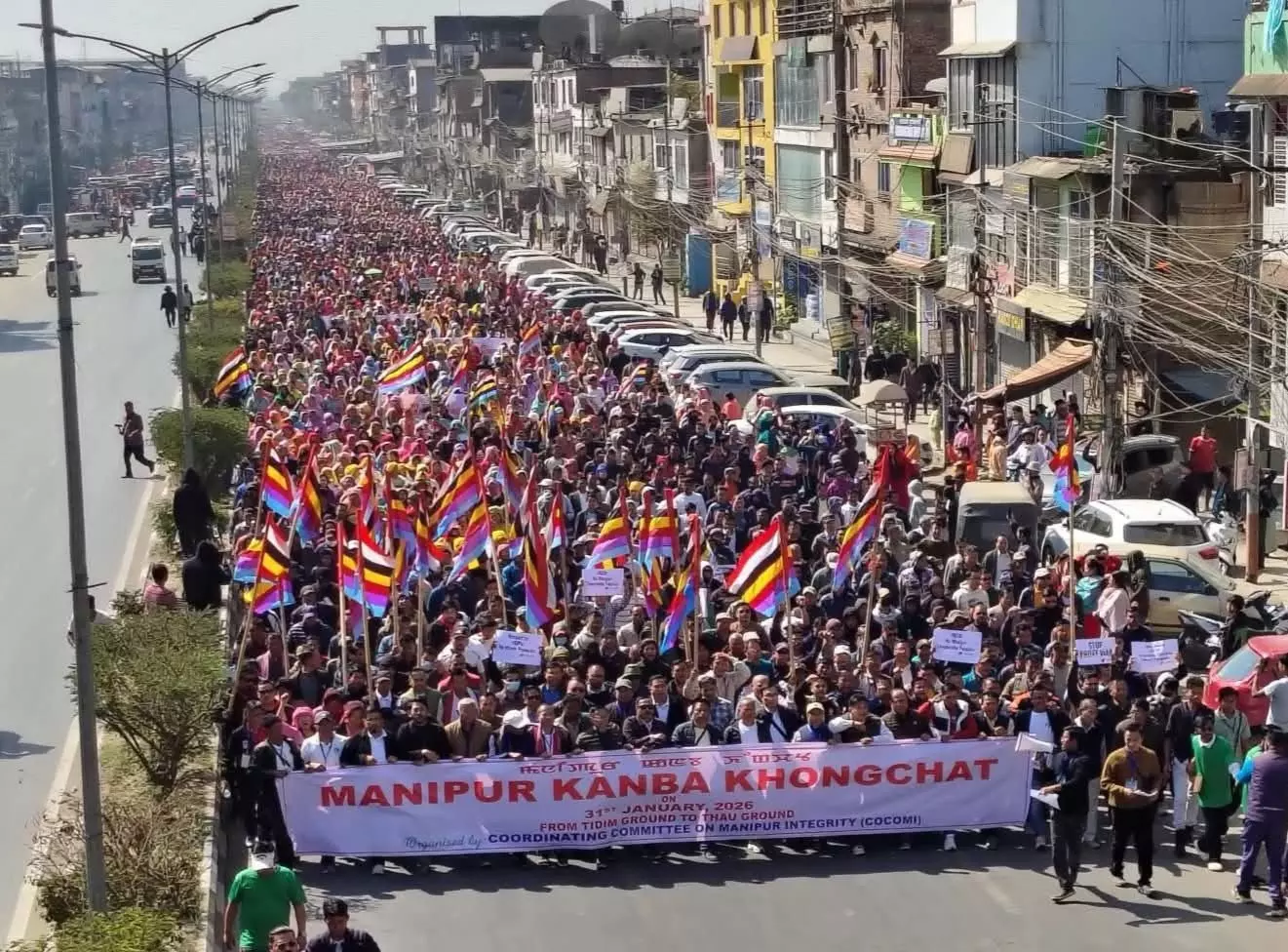 Guwahati: The Coordinating Committee on Manipur Integrity (COCOMI) on Saturday organised a massive public rally in Imphal to press for the protection of Manipur’s territorial and social integrity and restoration of a popular government in the state.