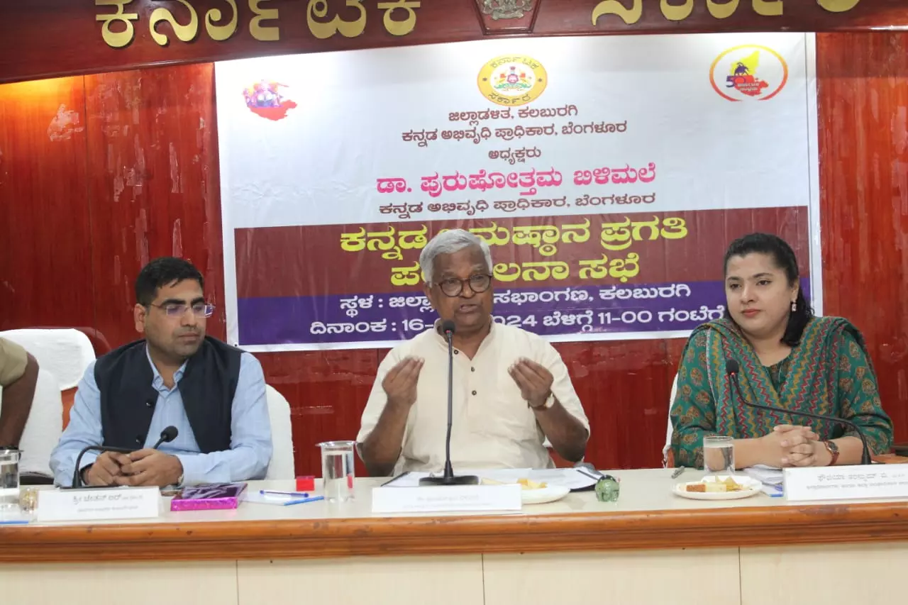 Kalaburagi: Kannada Development Authority (KDA) Chairman Dr Purushottama Bilimale stated that a letter has been written to the government, urging the implementation of the Sarojini Mahishi Report through a government order. This report recommends that group ‘C’ and ‘D’ jobs in the government and private sectors in Karnataka be filled by local Kannadigas.