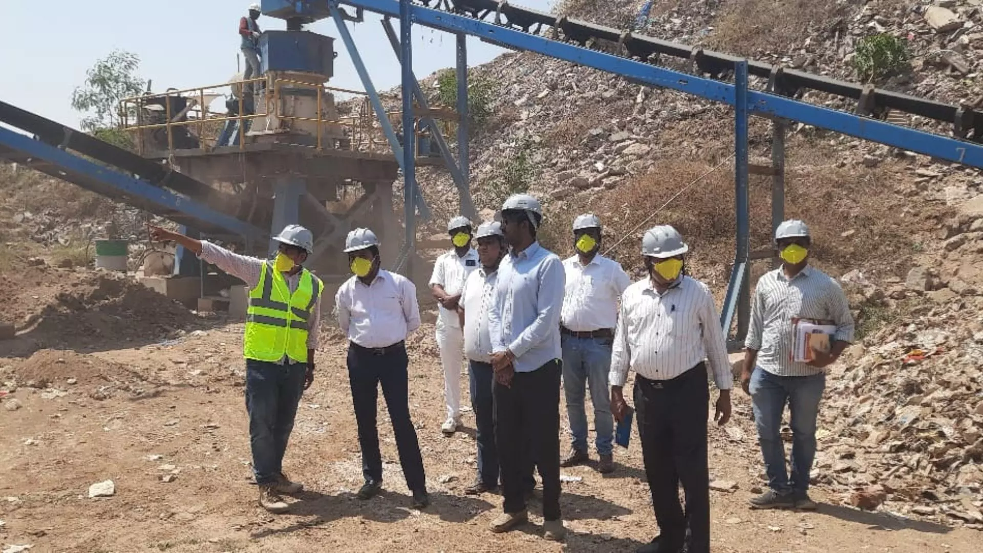 Telangana State Pollution Control Board (TGPCB) member secretary G. Ravi along with other officials during a visit to the Soma Srinivas Reddy C&W reprocessing facility in Shamshabad. (Image: DC)
