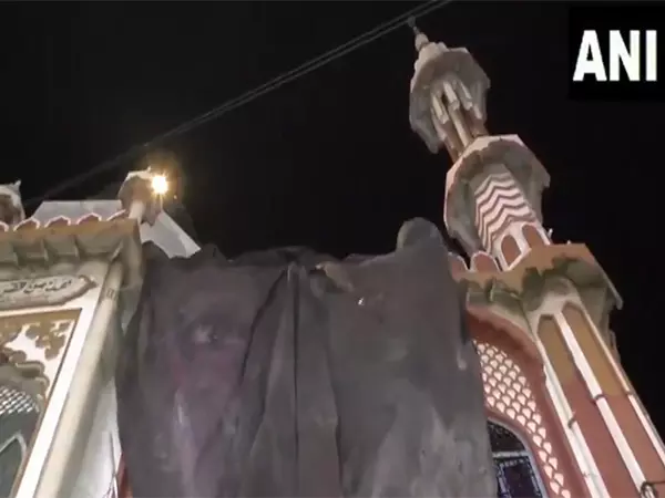 Ahead of the Holi festival, mosques in Aligarh were covered with tarpaulin sheets as a precautionary measure following a decision by the local administration. (ANI)