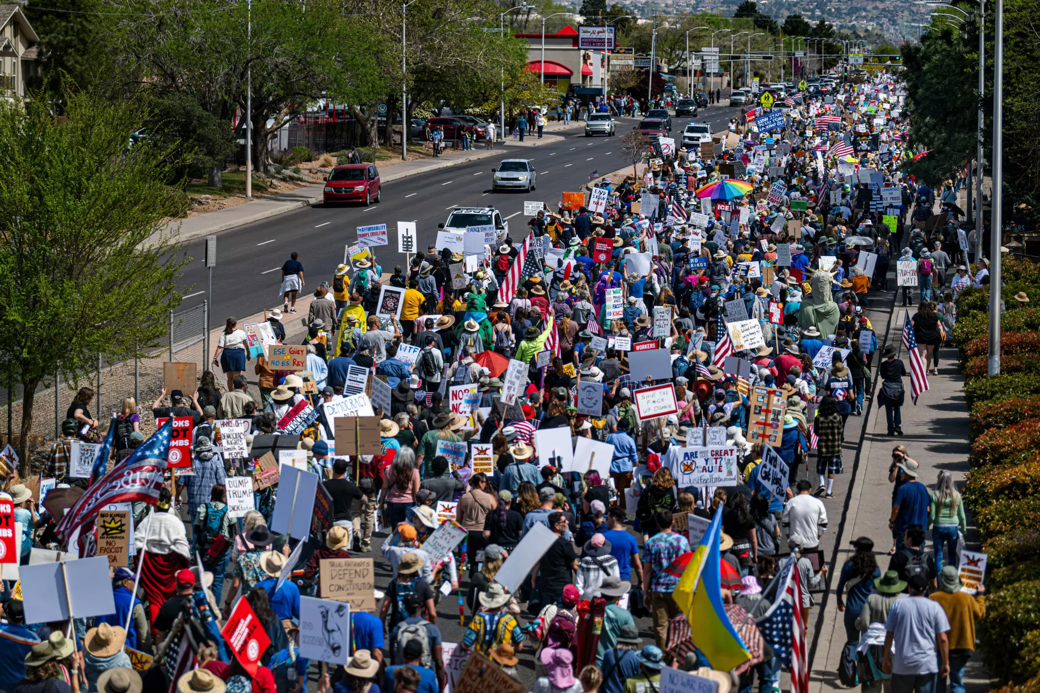 New Mexicans head down Montgomery Blvd for a "No Kings" march in Albuquerque, N.M (AP)