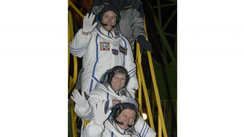 Whitson, 56, a biochemist and NASA's former chief astronaut, is making her third trip to the station, a $100 million research laboratory that flies about 250 miles (420 km) above Earth.