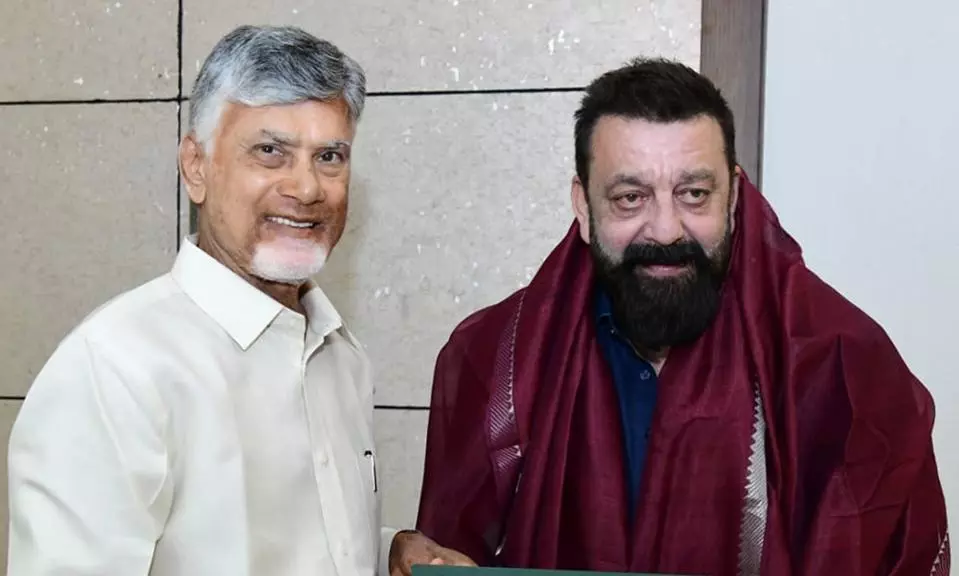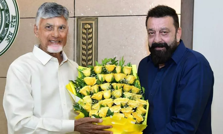 Vijayawada: Bollywood actor Sanjay Dutt paid a courtesy call on Chief Minister Chandrababu Naidu on Monday and the discussions centered around ways to boost the film industry in Andhra Pradesh.